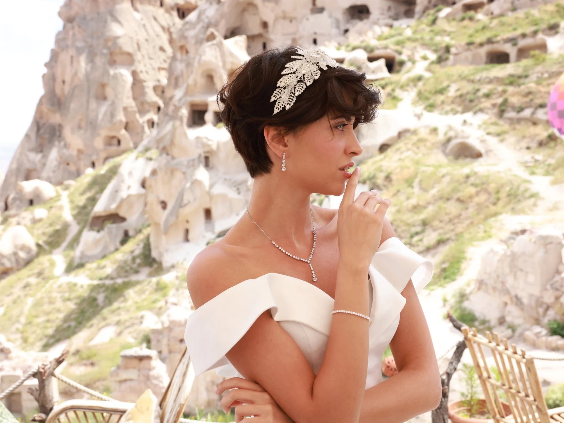 Bridal crown with zircon stones. It can take shape according to the head structure. It is made entirely by hand workmanship.