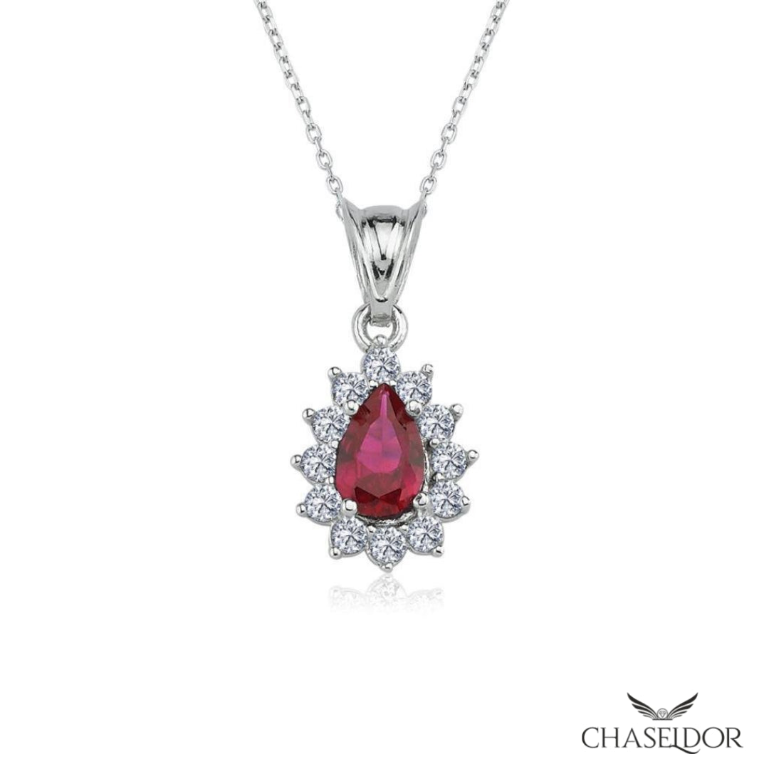Chaseldor Diamond Montage Ruby Drop Necklace