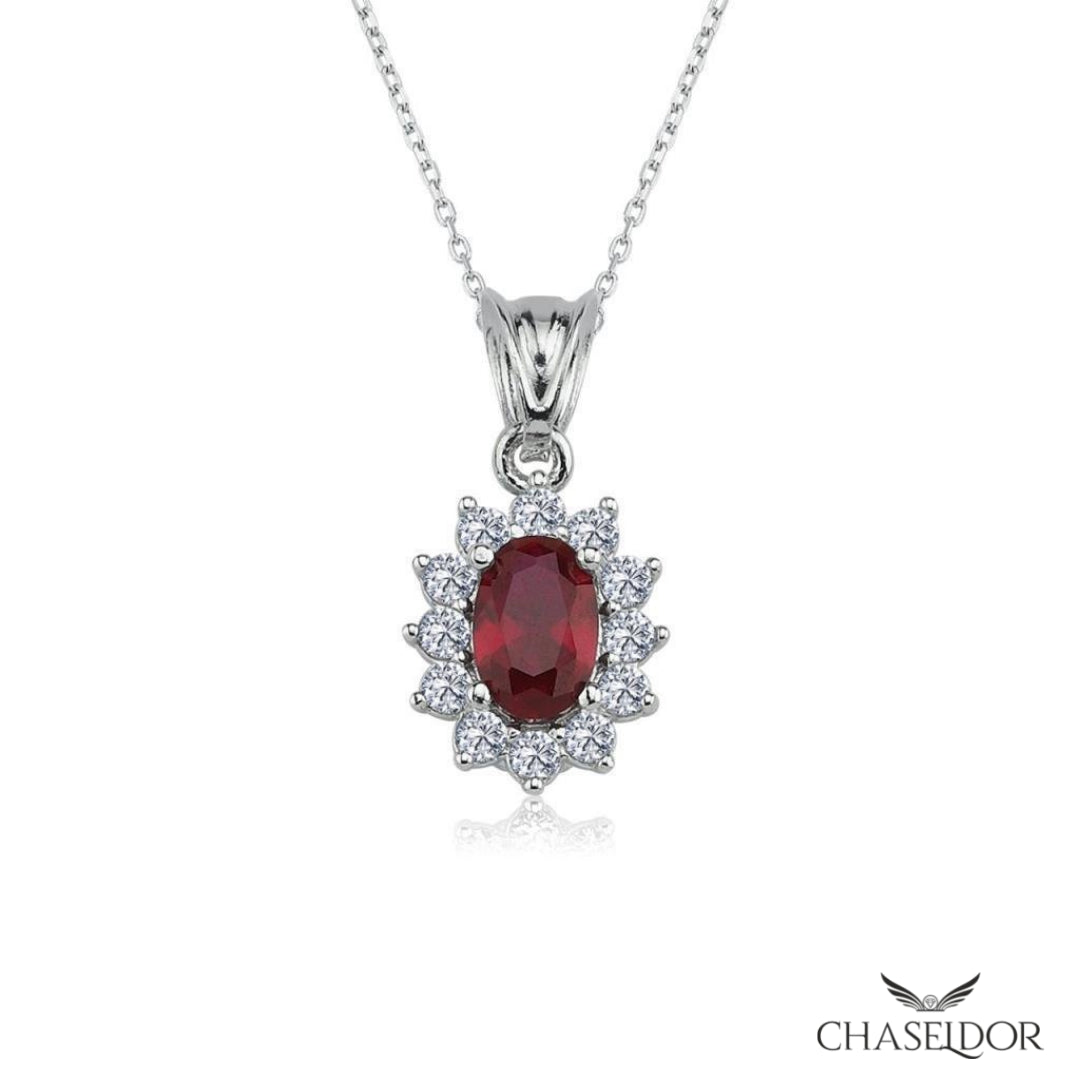 Chaseldor Diamond Montage Ruby Oval Necklace