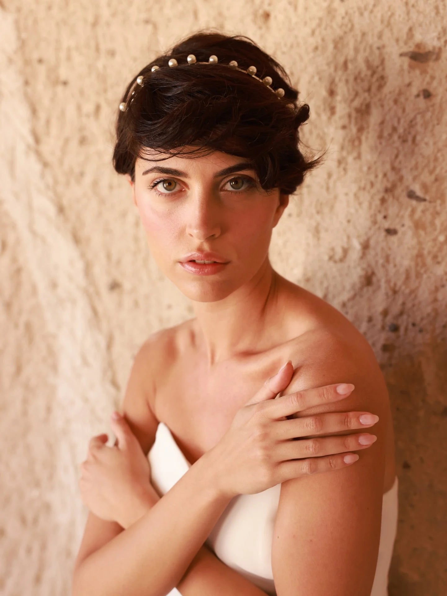 Zircon stone bridal crown. It can take shape according to the head structure. It is completely handcrafted.