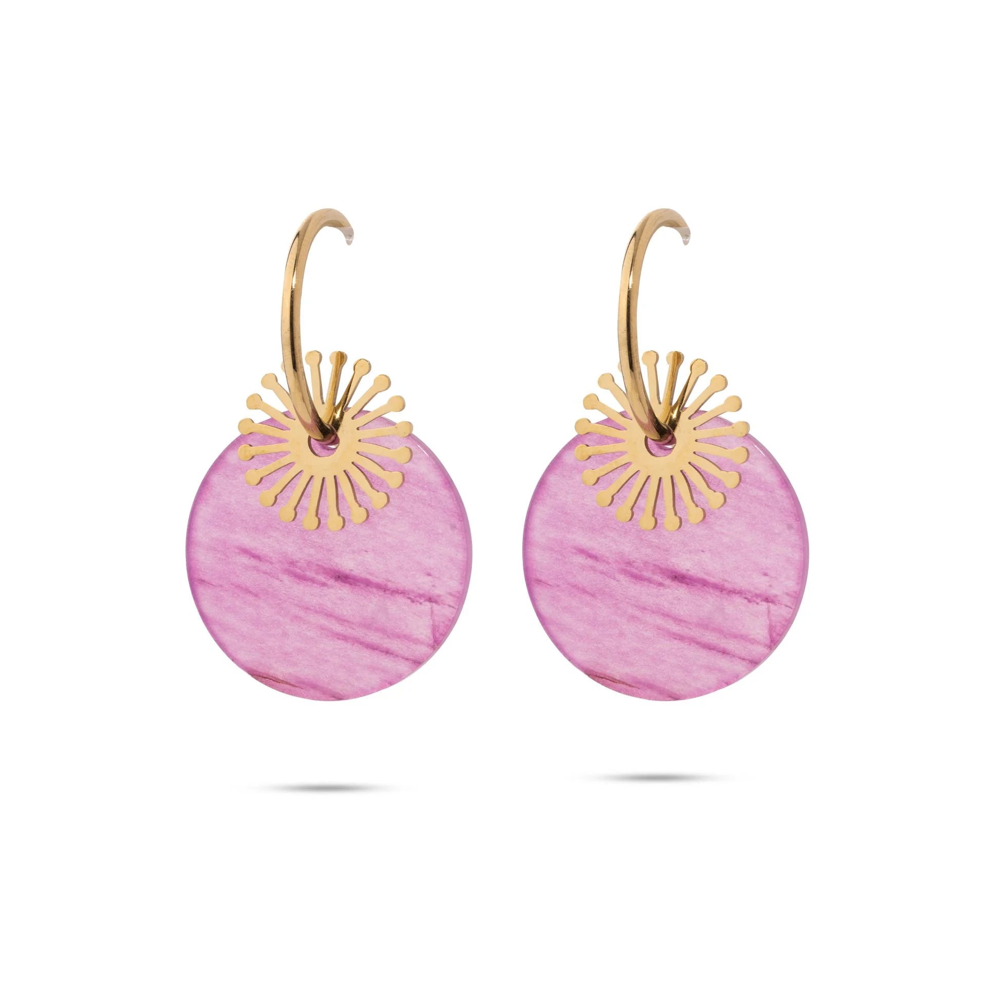 Chaseldor Maki Pink Natural Stone Gold Plated Steel Women Earrings