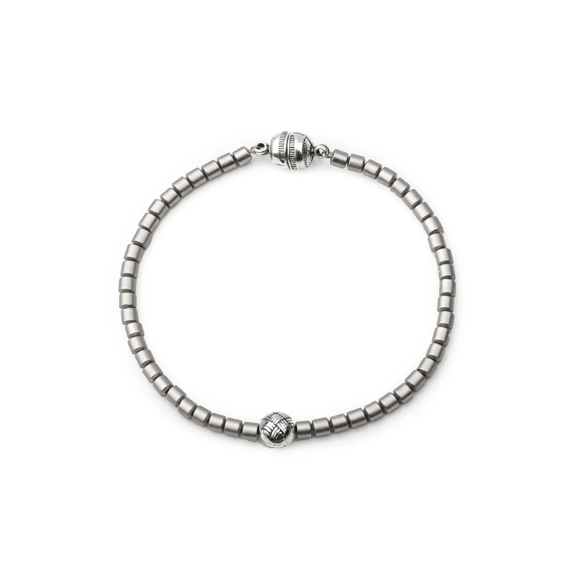 The entire necklace is made of hematite stones.