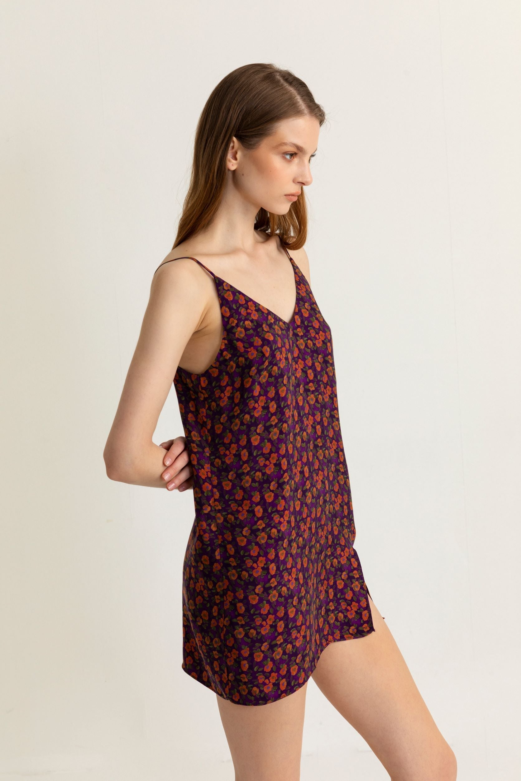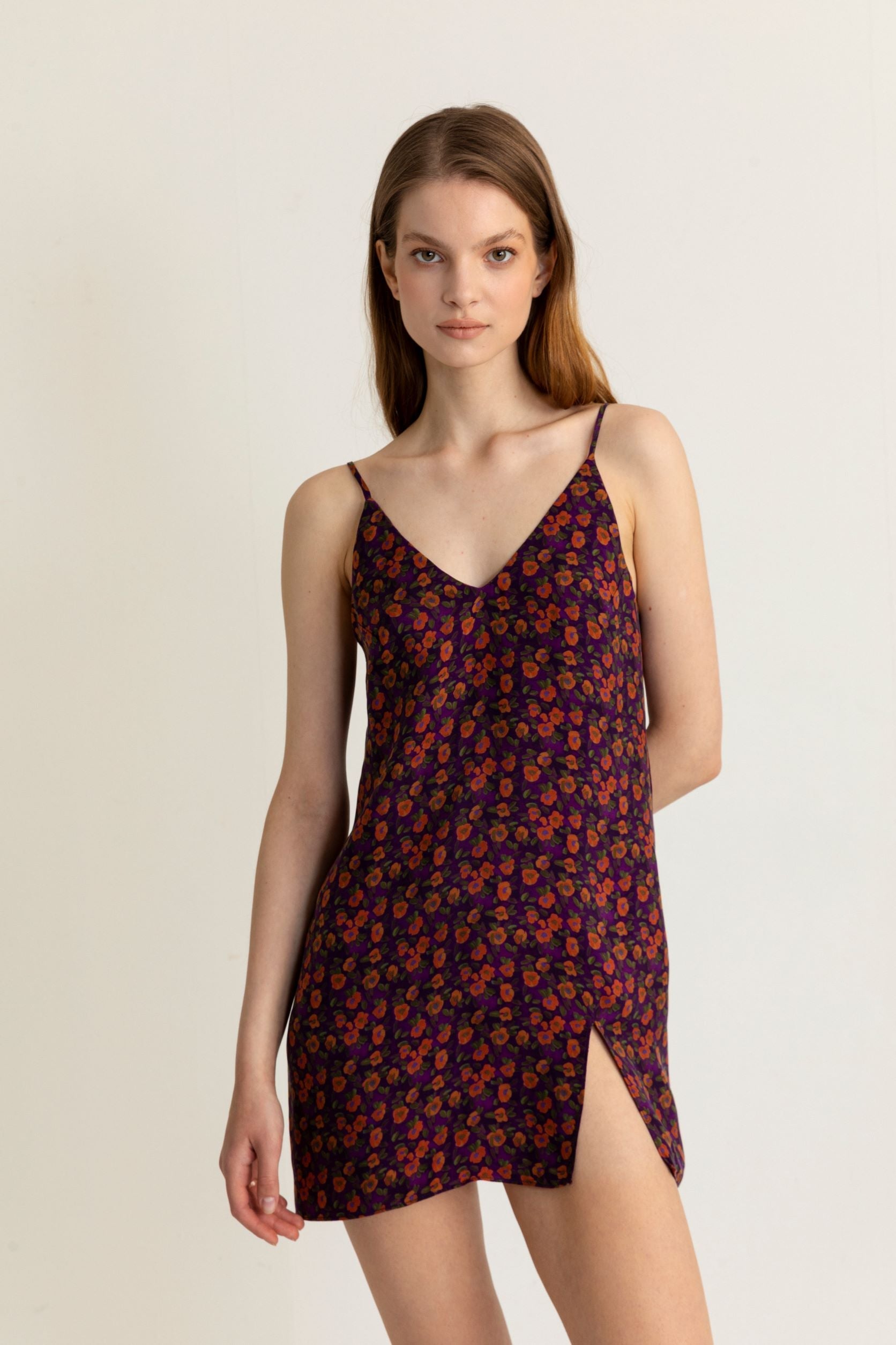 Mini elbiselerin en yeni versiyonu, yazın kurtarıcı parçası: Chiara Elbise. Süper mini kesimi ve derin yırtmacı ile kendinizi özgür ve rahat hissetmeniz için en kaliteli vegan ipek kumaştan üretildi. Renkli ve hareketli desenleri sayesinde yaz partilerinde tüm gözler üzerinizde olacak.