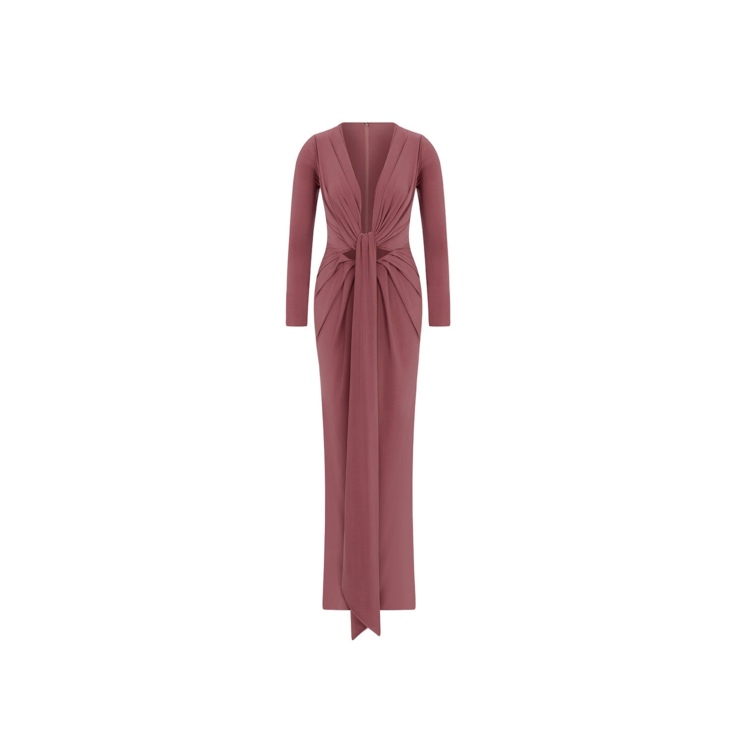 It is a flexible and soft fabric. You can achieve a very soft elegance with the dry rose color. It gives your body a much more fit appearance with the drapes in the abdominal area.
