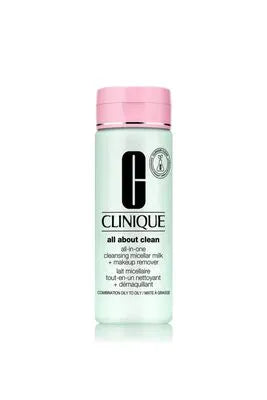 Clinique All About Clean Micellar 200 ml Makyaj Temizleyici Karma ve Yağlı Ciltler için. Çift kullanımlık Clinique misel süt, tek bir kolay adımda makyajı temizler ve çıkarır.