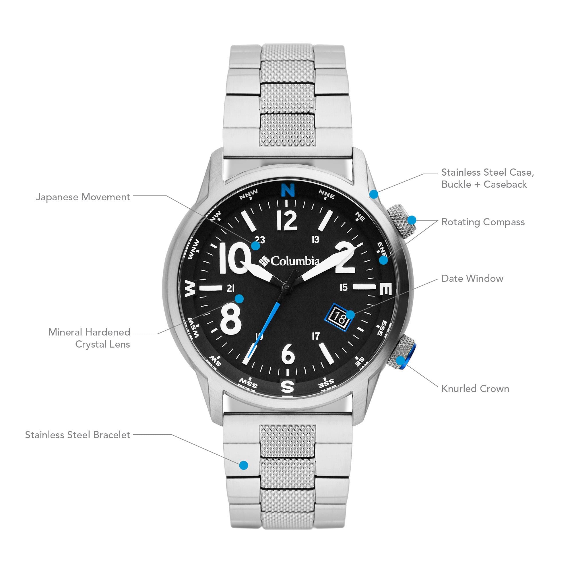 Kasa Çapı: 42 mm - Kasa Şekli: Yuvarlak - Kasa Materyali: Çelik - Kasa Rengi: Metalik Gri - Kordon Materyali: Çelik - Kordon Rengi: Metalik Gri- Kadran Rengi: Siyah - Kadran Işığı: Yok - Taş: Yok - Çalışma Şekli: Analog - Teknolojisi: Quartz - Takvim: Var - Kronometre: Yok - Alarm: Yok - Cam Özelliği: Mineral - Özellik: Pusula - Su Geçirmezlik: 5 ATM - Garanti Süresi: 2 yıl - Cinsiyet: Erkek