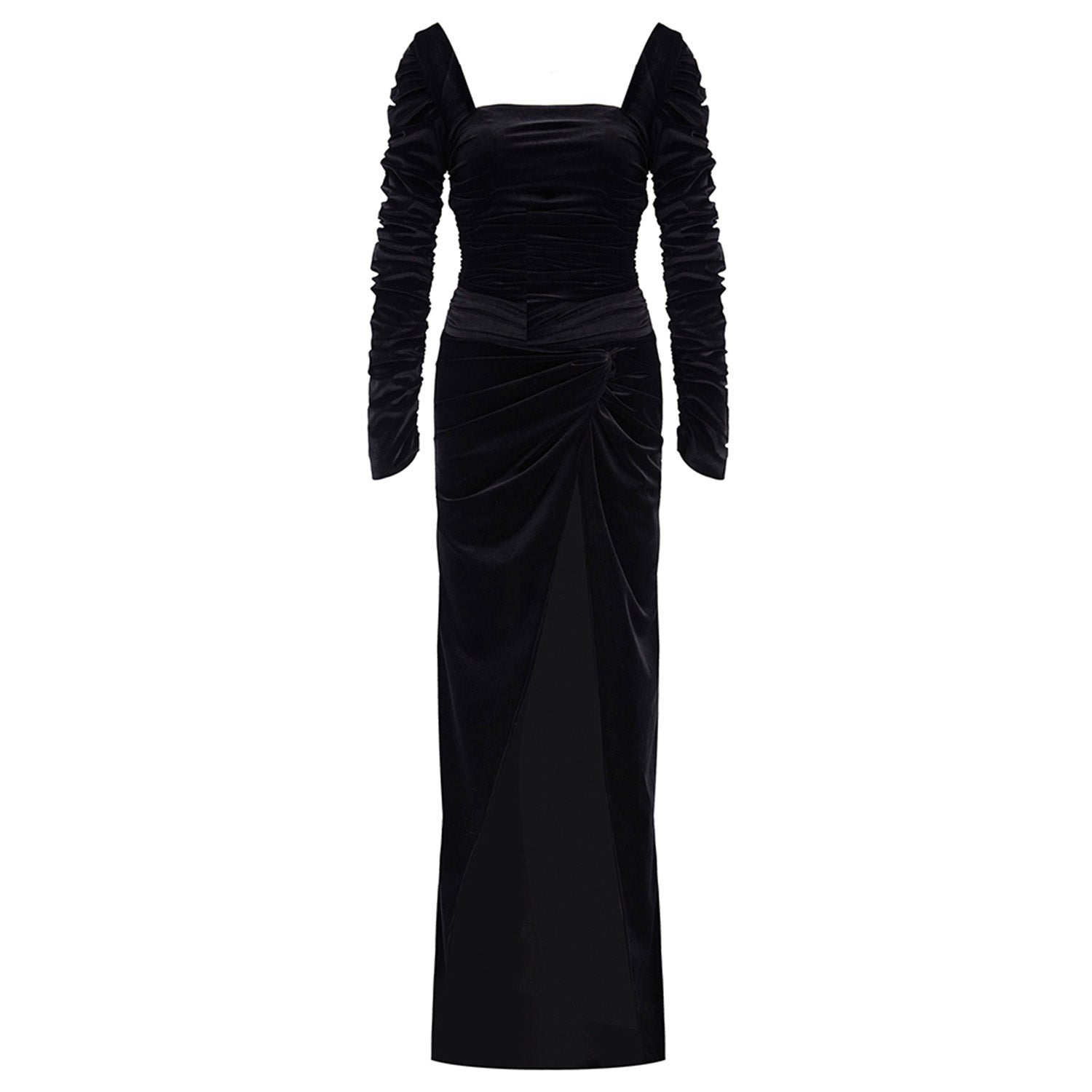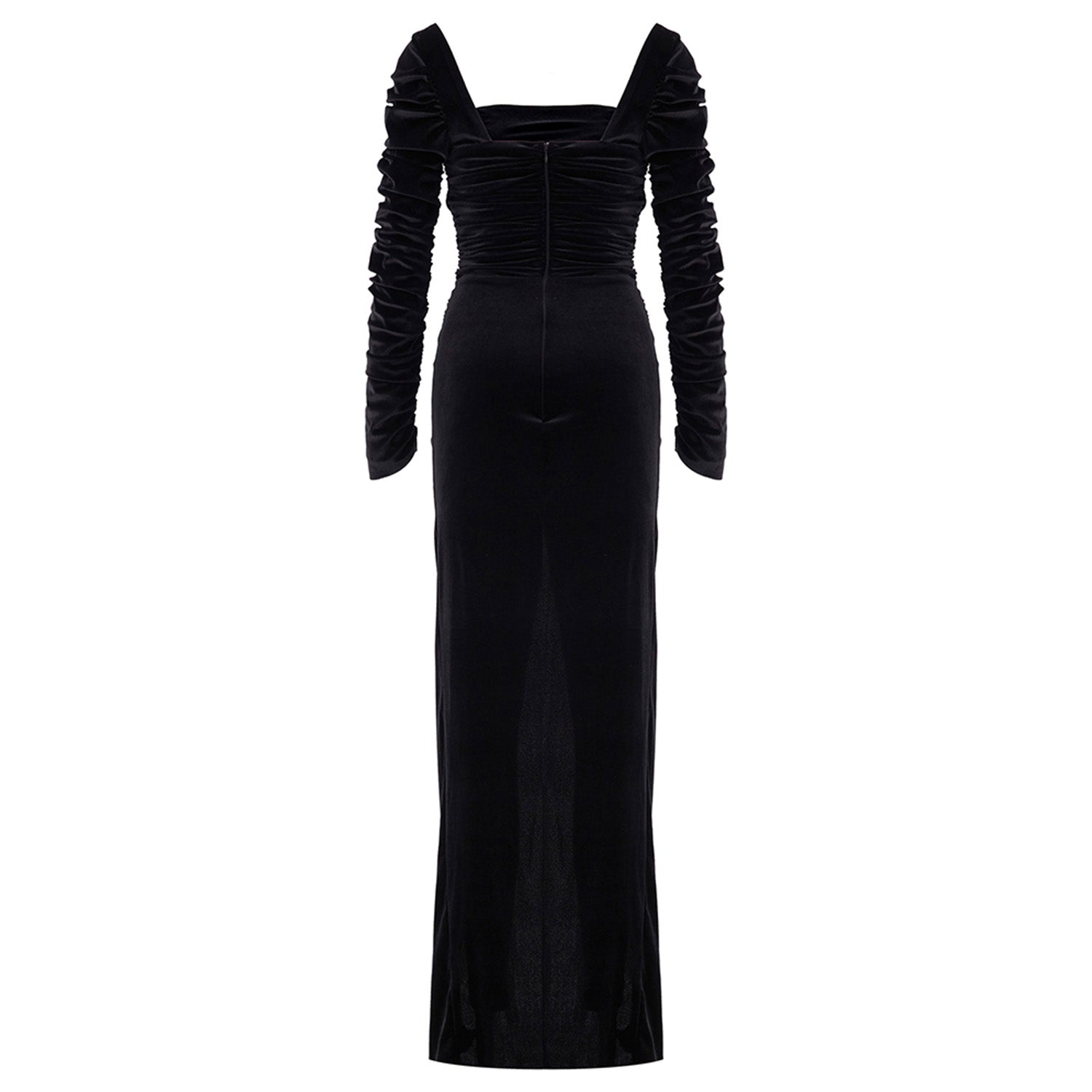 | Deep, velvety purples and passionate reds evoke the drama of the stage, while soft, ethereal creams and metallic tones pay homage to the elegance of the opera's leading ladies. When the curtains rise and the models take the stage, get ready to be transported to a world full of glamor and emotion with Une Soirée à L'opéra, which adds theatrical appeal to every detail such as shiny stone embroidery, fascinating ostriches and dramatic silhouettes.Whatever the occasion, Alia's sparkling velvet gown will light up the room as soon as you arrive. Contessa is cut from stretchy fabric for a body-hugging fit and is made for special occasions in black and red. It makes your body look much more stylish with its deep slit and fit pattern.