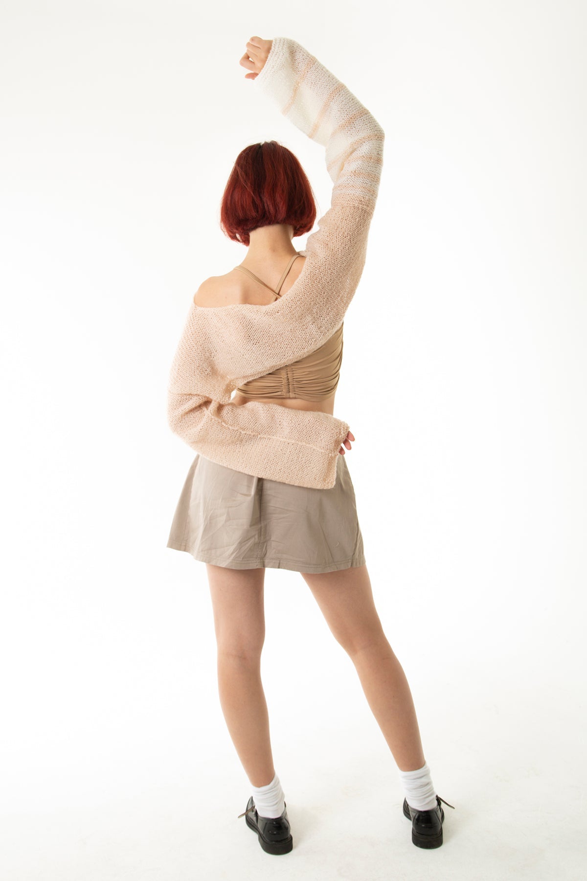 Handarte Los Angeles Pudra Pembe Salaş Angora Crop Top