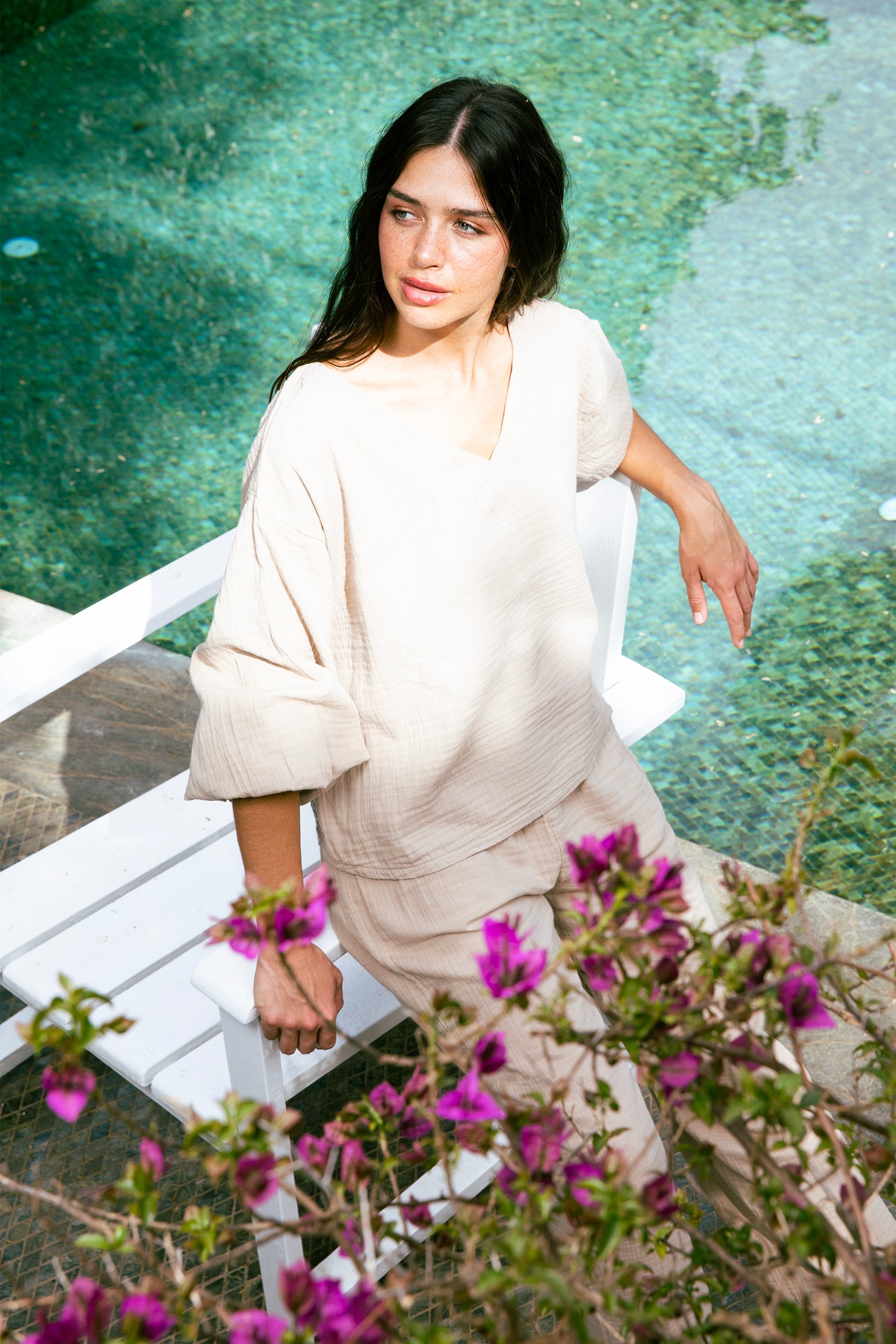 Rahat Kalıptır  100% Müslin Pamuk Kumaş Kullanılmıştır. Kimyasal İçermez. Çevre Dostu Giyim