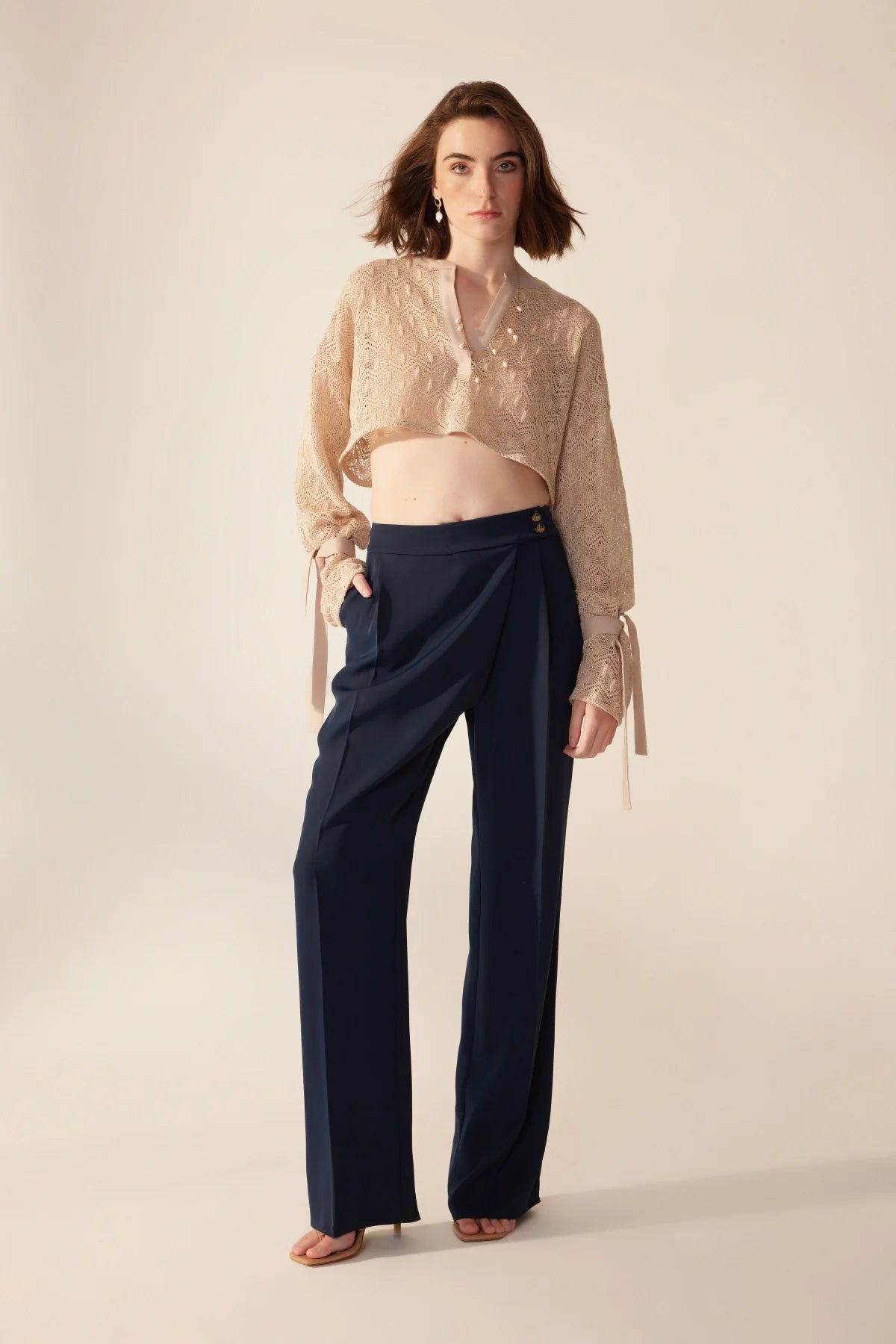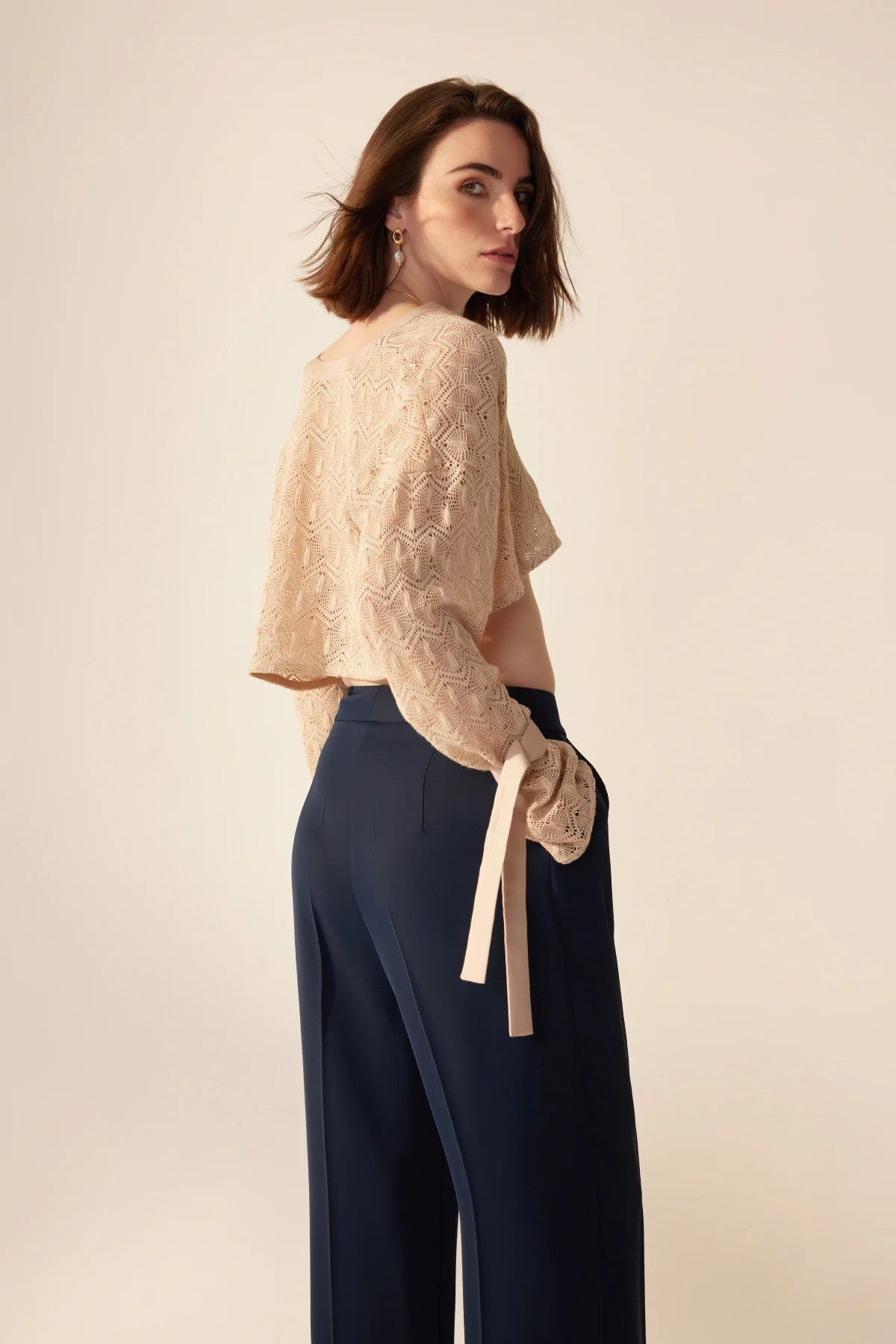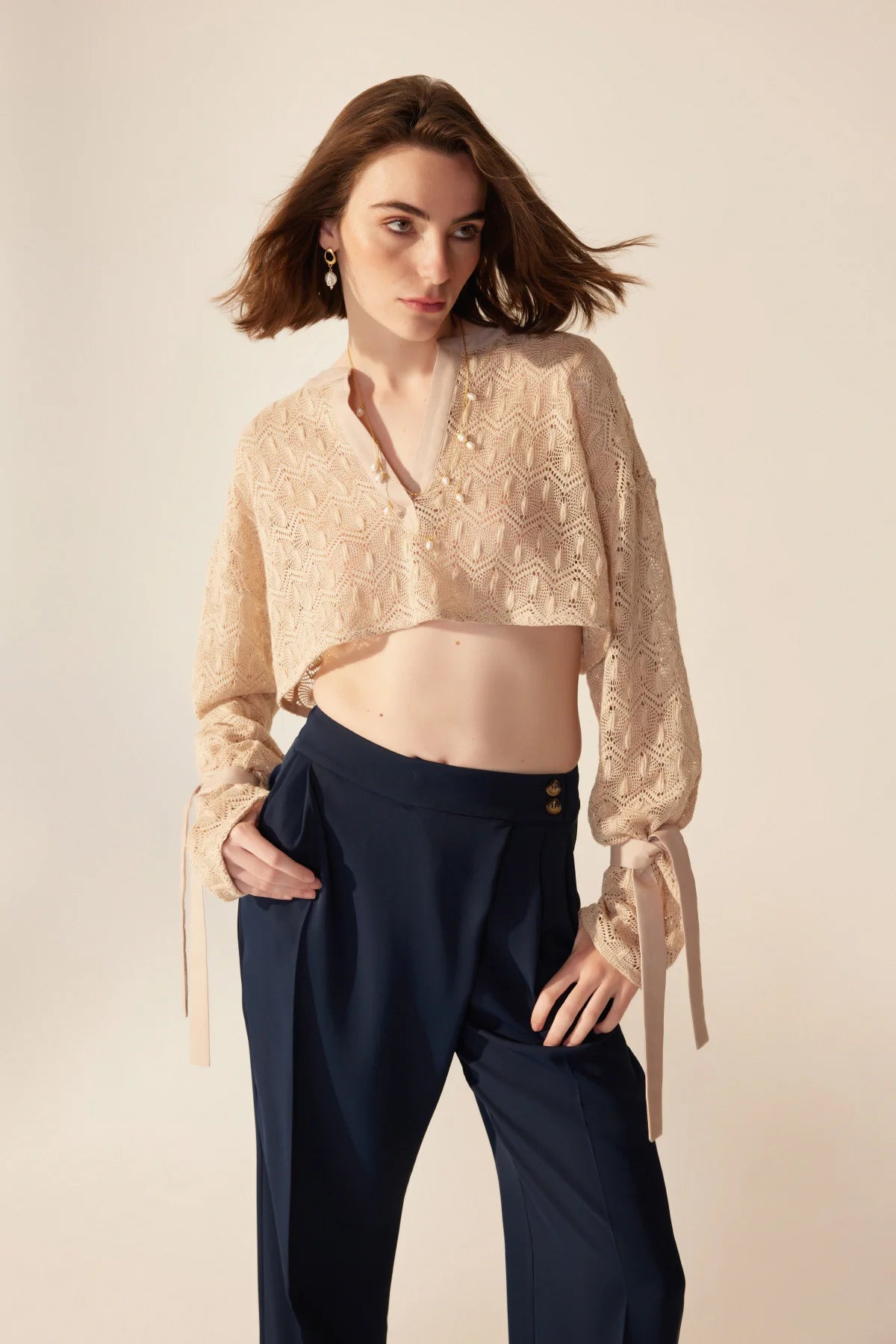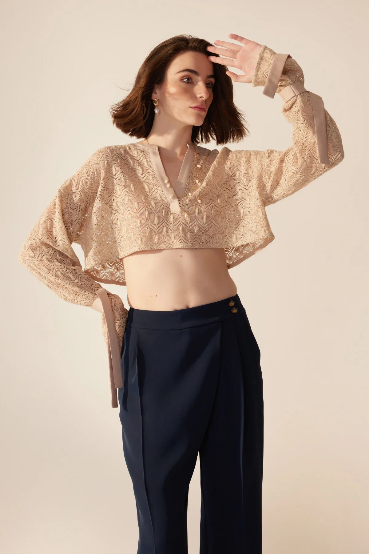 Crescent Line Karahindiba Kırpılmış Bluz Ekru