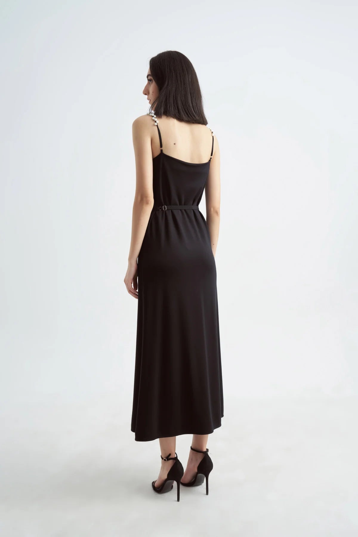 Handcrafted pearl straps, delicately adorned for a refined finish
