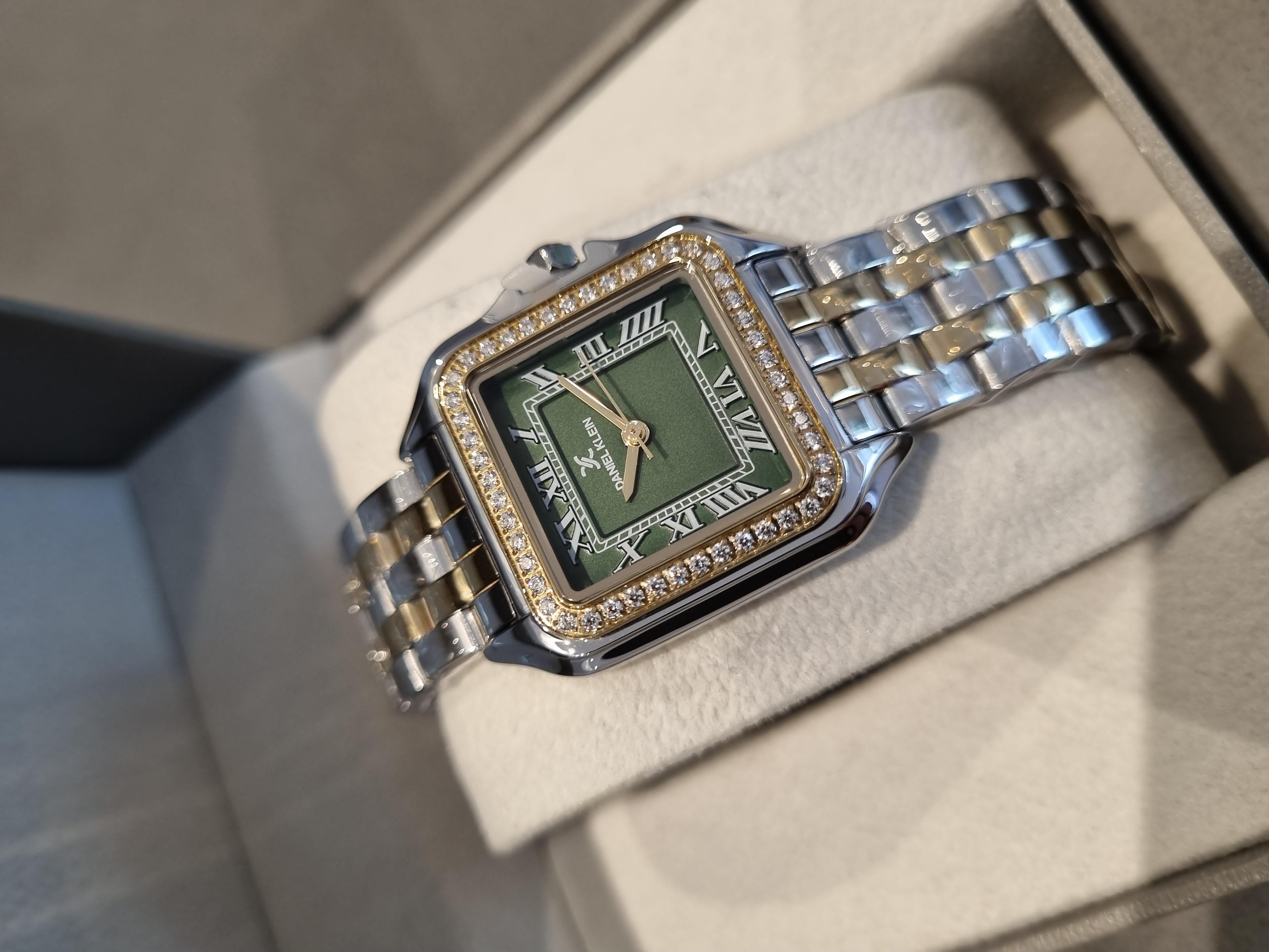 Kasa Çapı: 29 mm - Kasa Şekli: Kare - Kasa Materyali: Metal - Kasa Rengi: Gümüş - Kordon Materyali: Çelik - Kordon Rengi: Gümüş/Altın Rengi- Kadran Rengi: Yeşil - Kadran Işığı: Yok - Taş: Var - Çalışma Şekli: Analog - Teknolojisi: Quartz - Takvim: Yok - Kronometre: Yok - Alarm: Yok - Cam Özelliği: Mineral - Özellik: Kordon Genişliği: 16 mm - Kasa Yüksekliği: 37 mm - Su Geçirmezlik: 3 ATM - Garanti Süresi: 2 YIL - Cinsiyet: Kadın