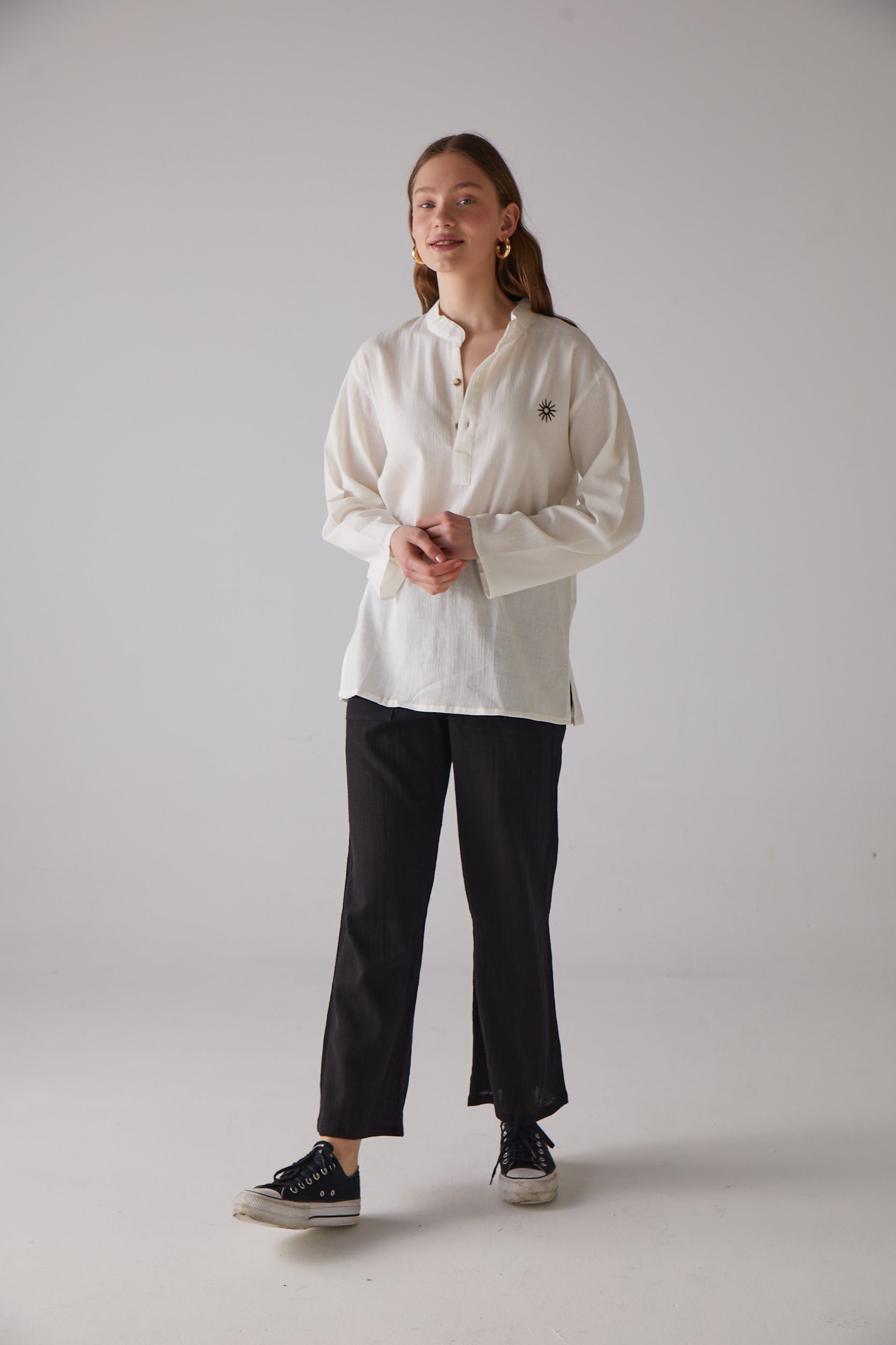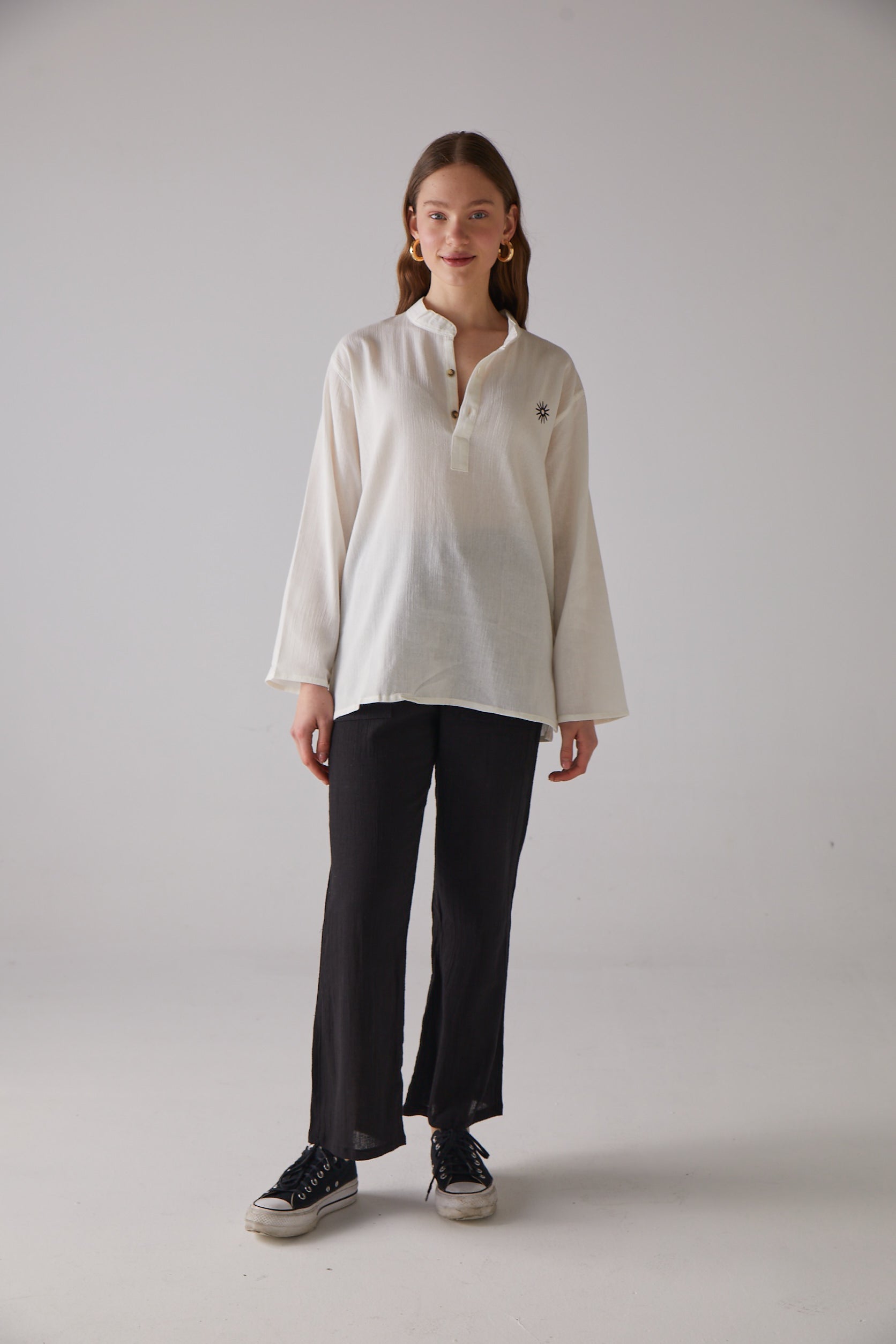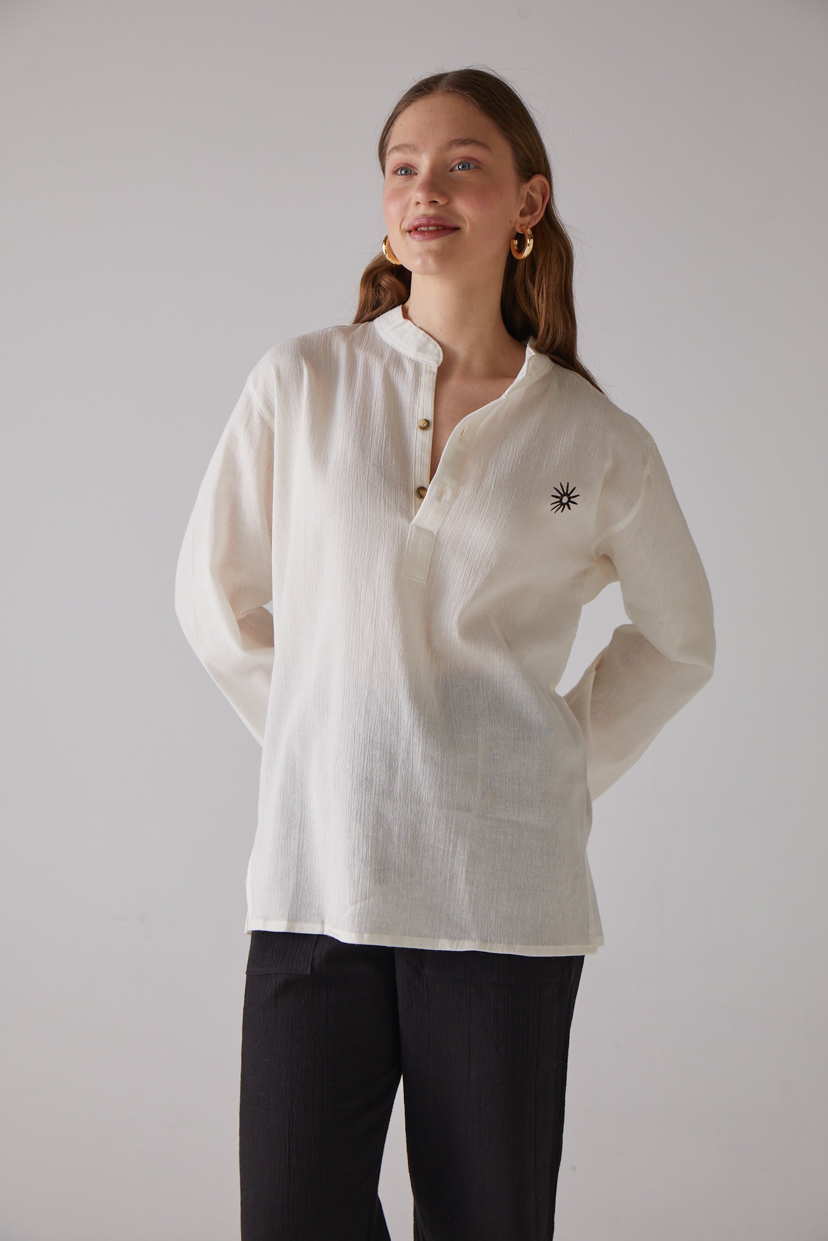Handarte Los Angeles Döngü Model Uzun Kollu Bej Gömlek