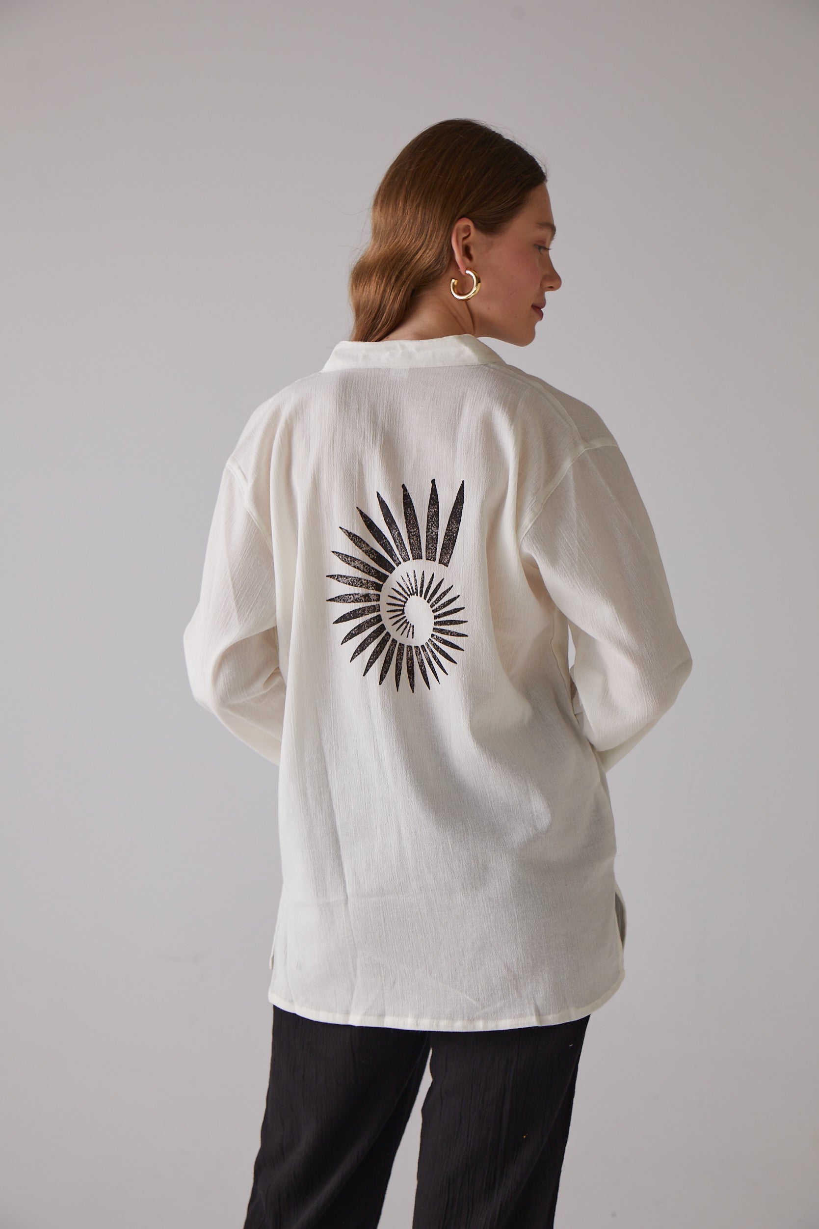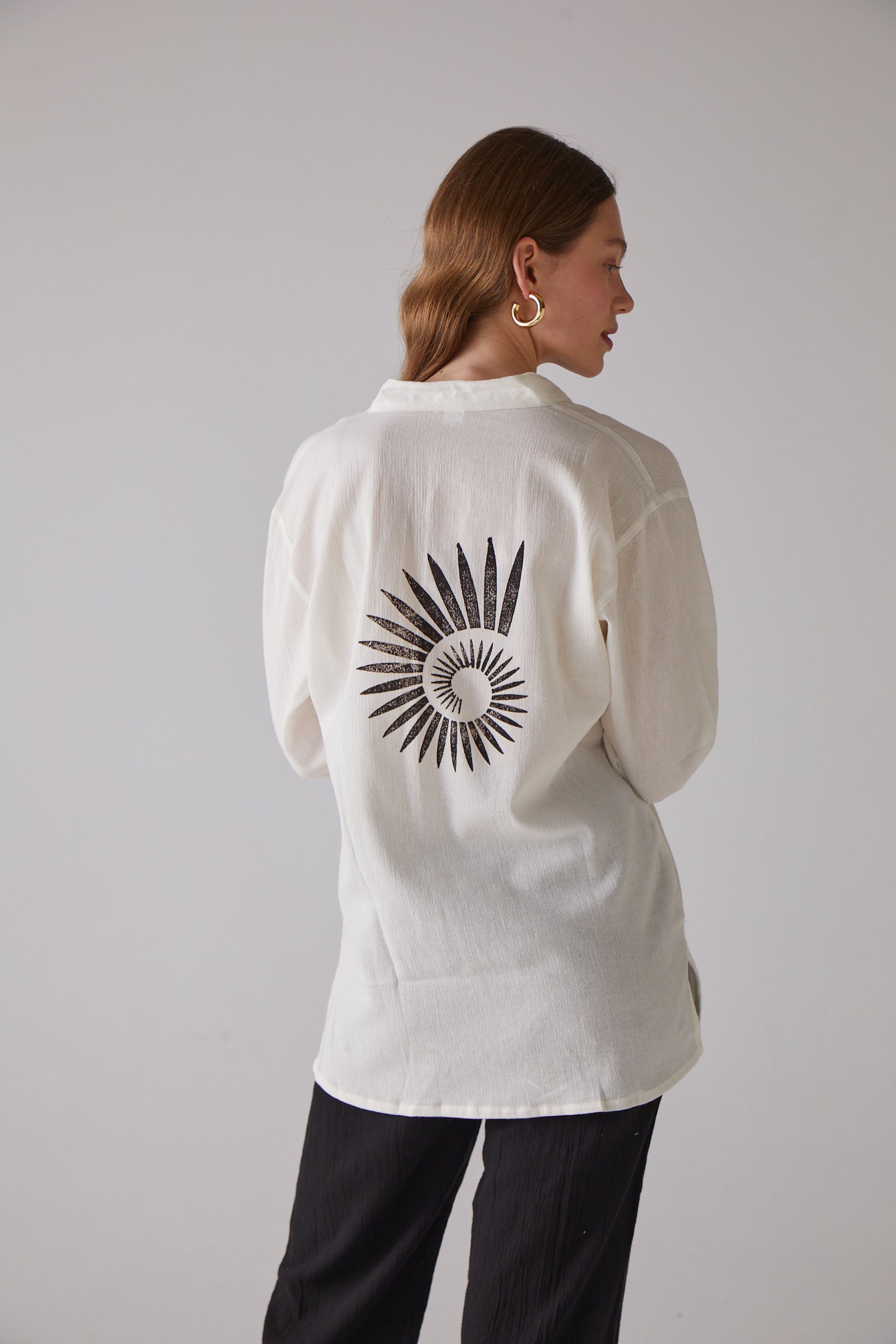 Uzun Kollu Gömlek % 100 Pamuk Çevre Dostu Ağaç Baskı Hafif Kumaş, Bol Kesim Şehir ve Yazlık yer giyimine uygun...