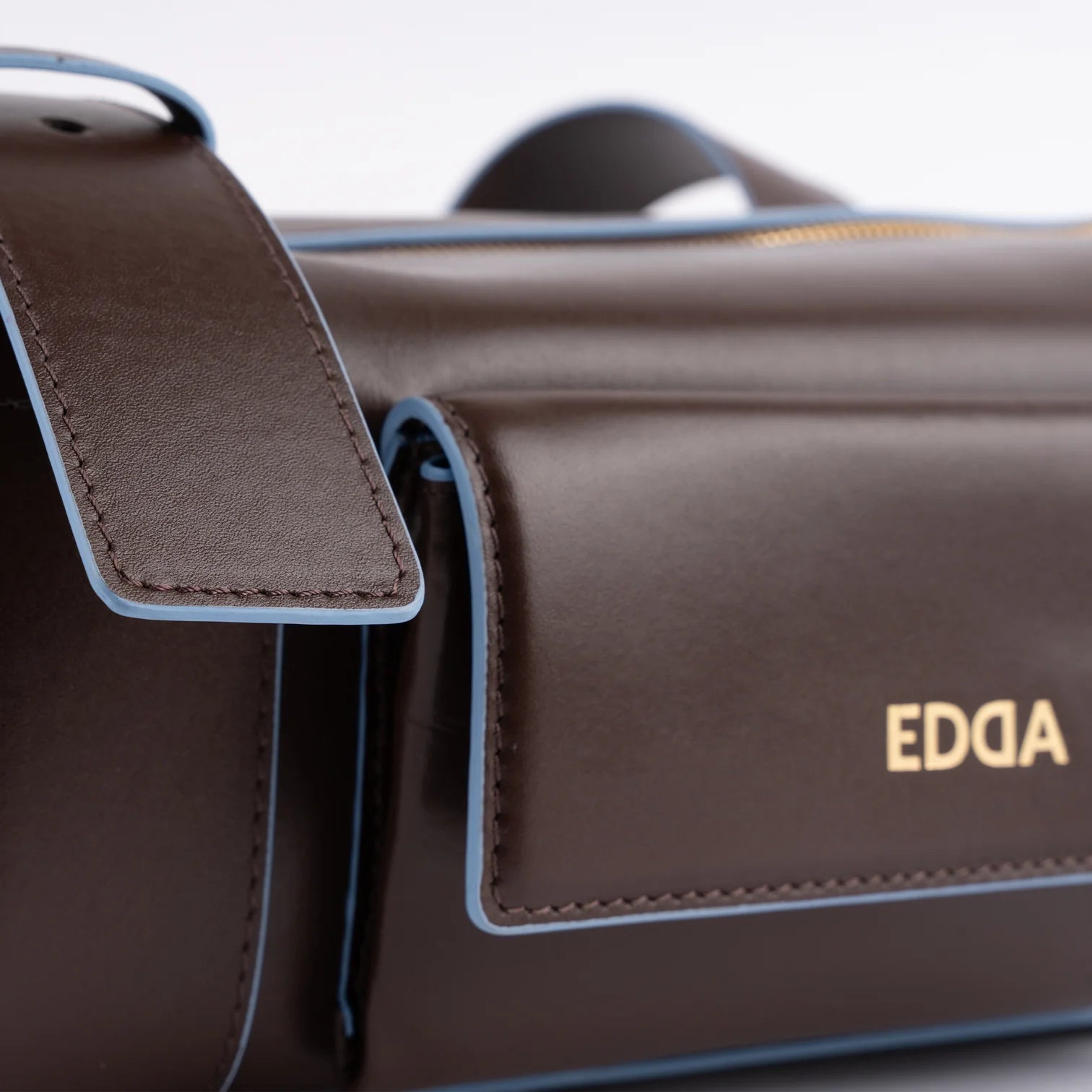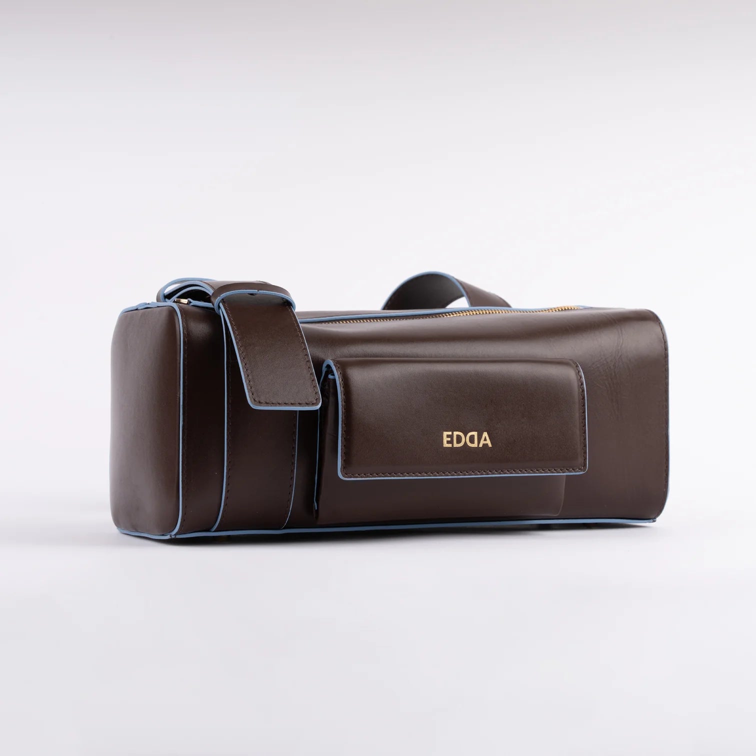 Introducing EDDA's Down To Earth Collection, a sophisticated creation with a touch of modern coolness. This collection showcases expert craftsmanship, with each piece meticulously fashioned from supple leather, taking on a sleek angular shape reminiscent of a square prism. The star feature is the adjustable diagonal leather strap, offering versatile carrying options as a chic shoulder bag or a trendy handbag – it's all about your personal style and mood.