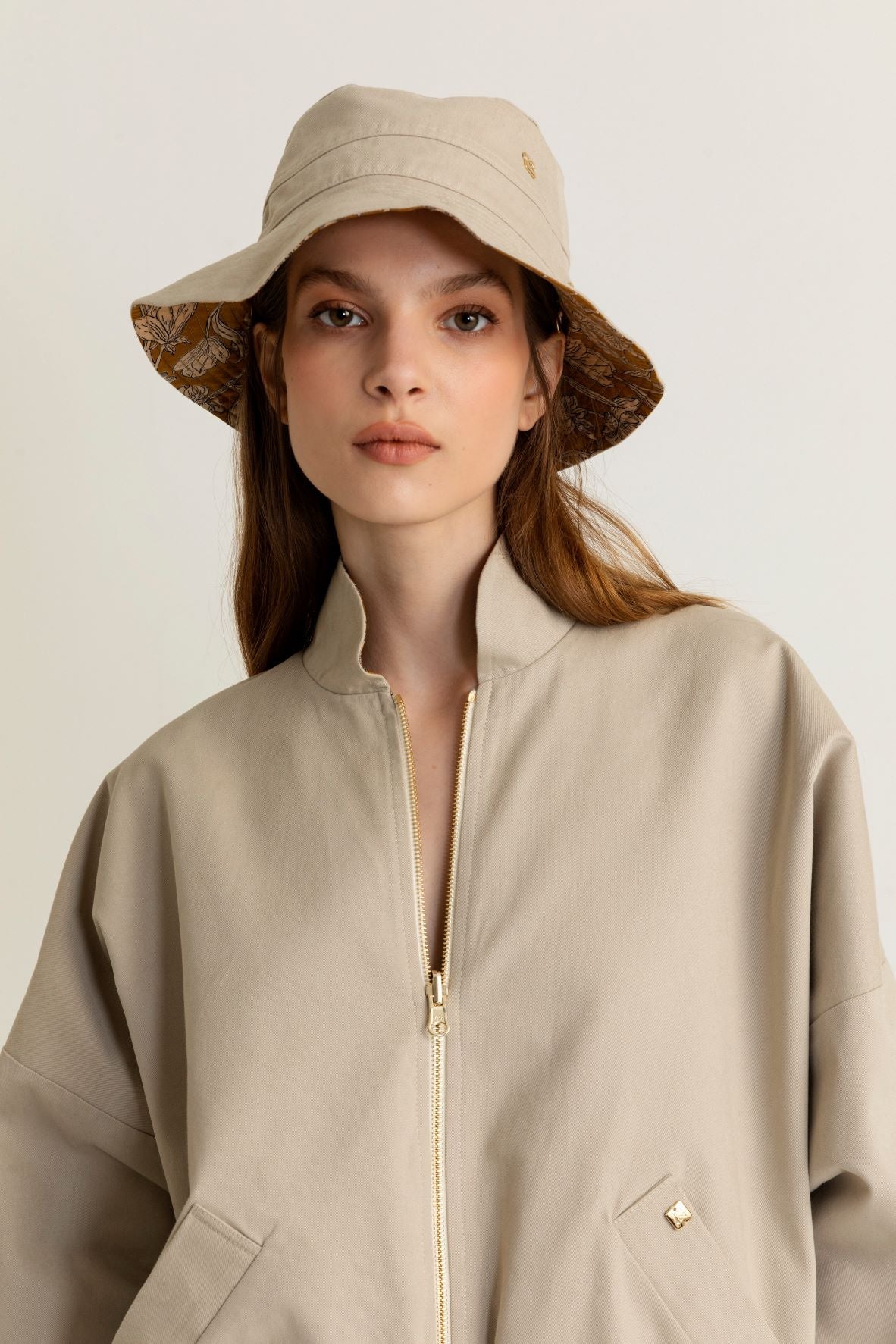 Baskılı astarlı, ters çevrilebilir pamuklu bomber ceket.