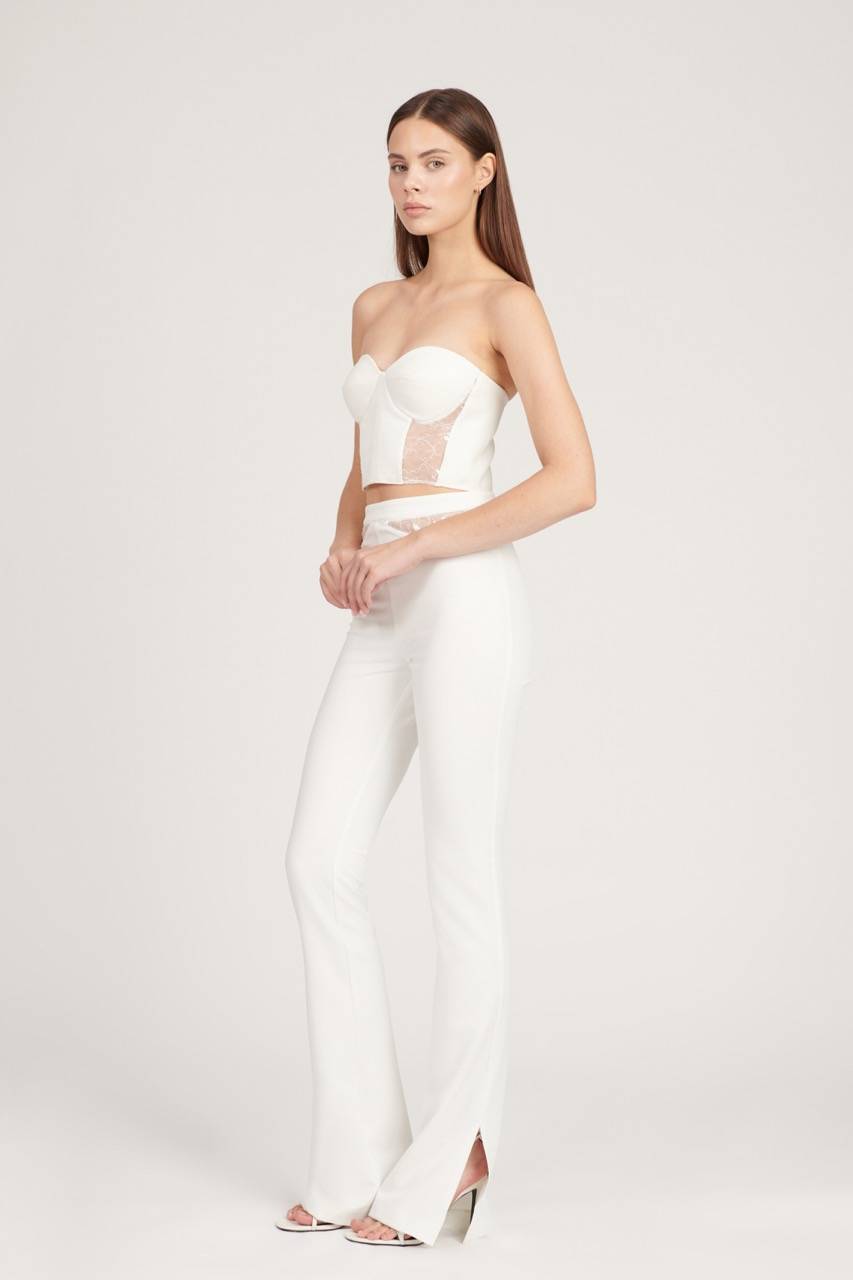 Emma Trousers With Lace Detail, High Waist Dry cleaning only Since this product is made to order, it can be exchanged; but returns are not accepted. Our product on the model is size 36. High waist Cut-out lace trousers with slit detail