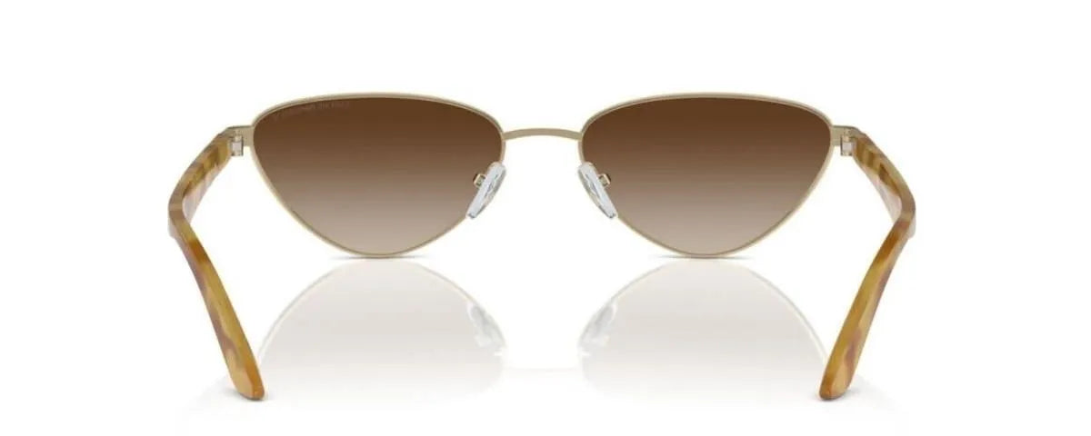 Altın renkli kemik-metal karışımı kedi gözü formundaki çerçevesi, feminen hatları vurgularken, kahverengi gradyan camlarıyla sofistike bir görünüm sunar. UV400 korumalı organik camlar, hem stil hem de göz sağlığı açısından üst düzey koruma sağlar.