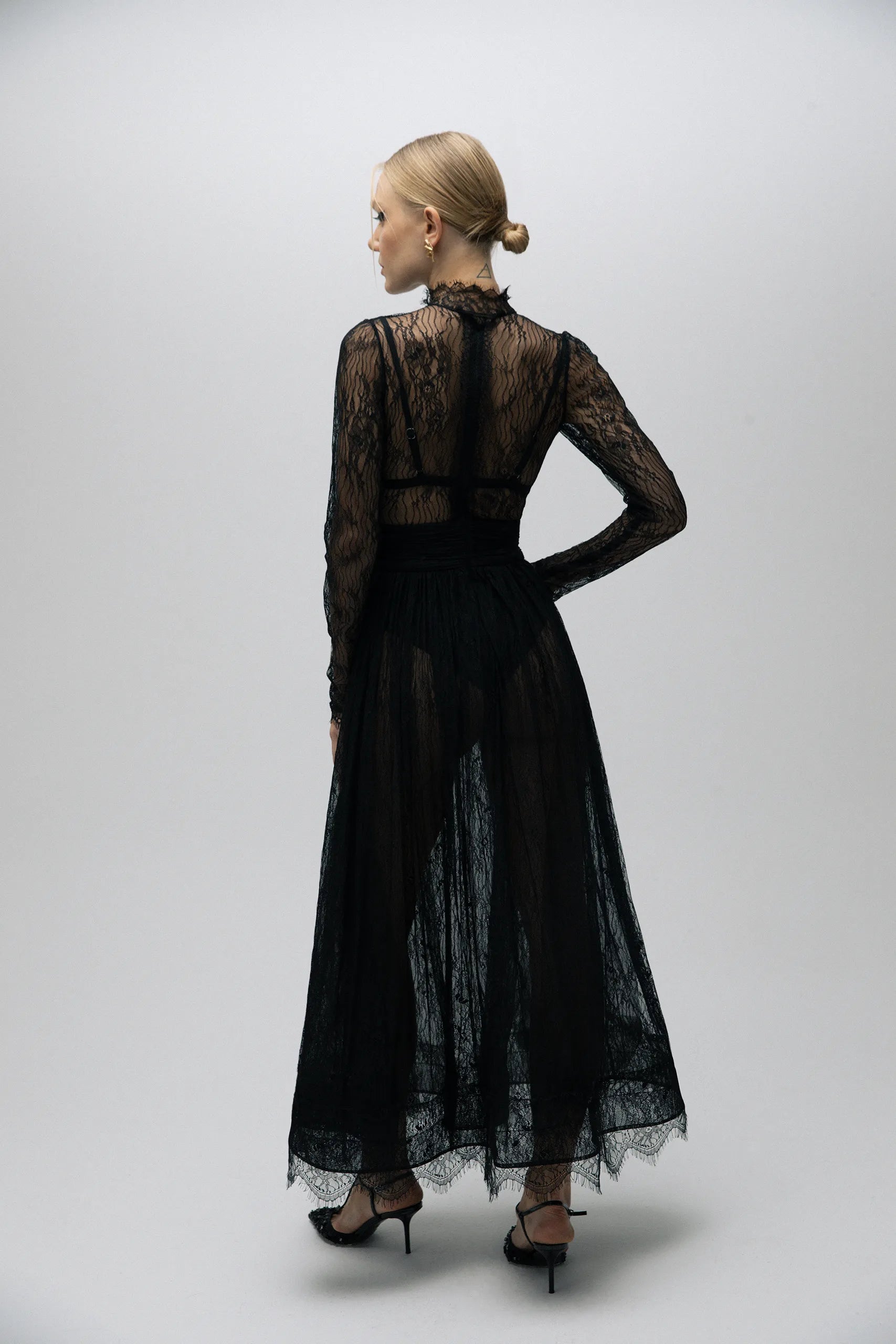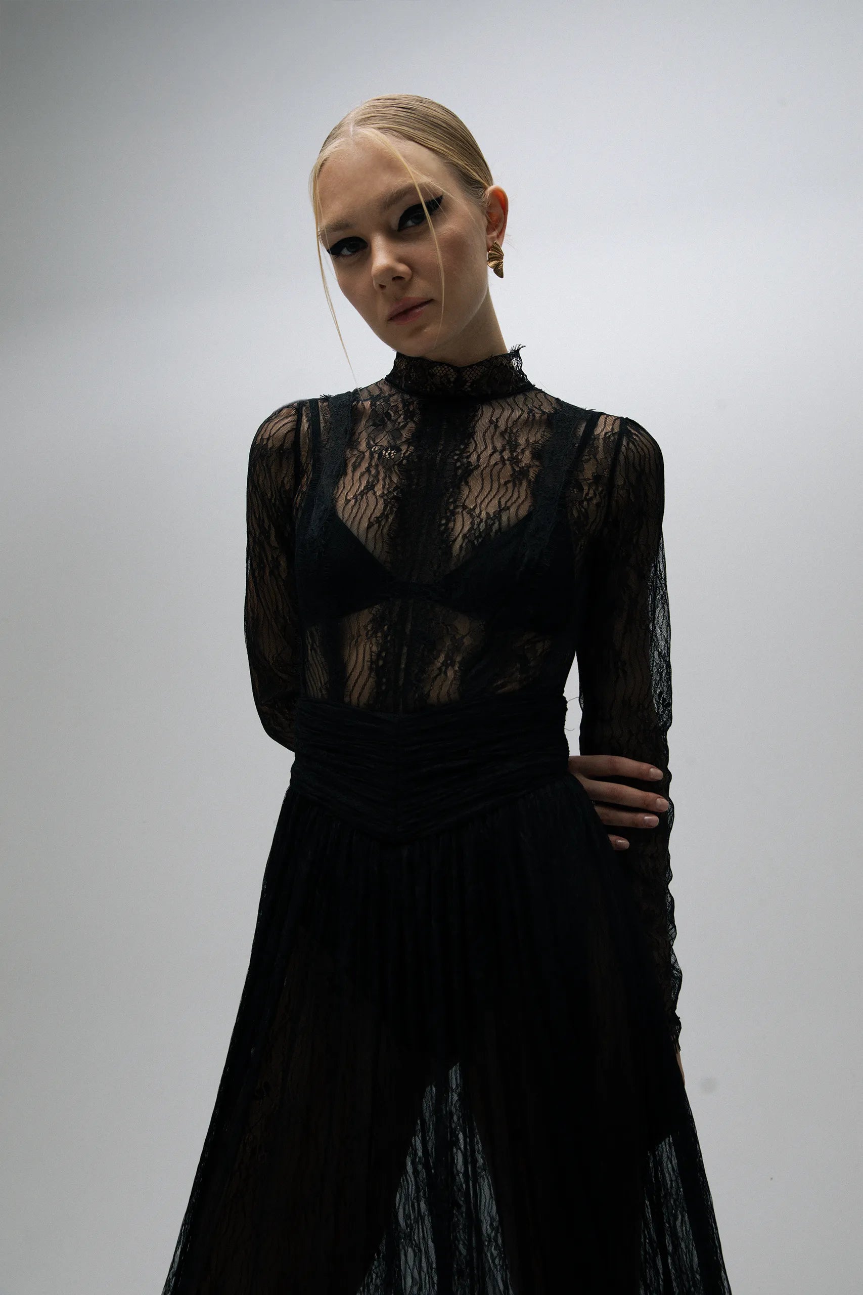 Reflecting the purest form of elegance, this black satin dress is sophisticated with its minimalist design. The silhouette that perfectly fits the body meets the flowing texture of luxurious satin, offering impeccable elegance. The wide band detail on the chest adds a modern touch, while the detail that makes the dress special is the straps decorated with natural stones.