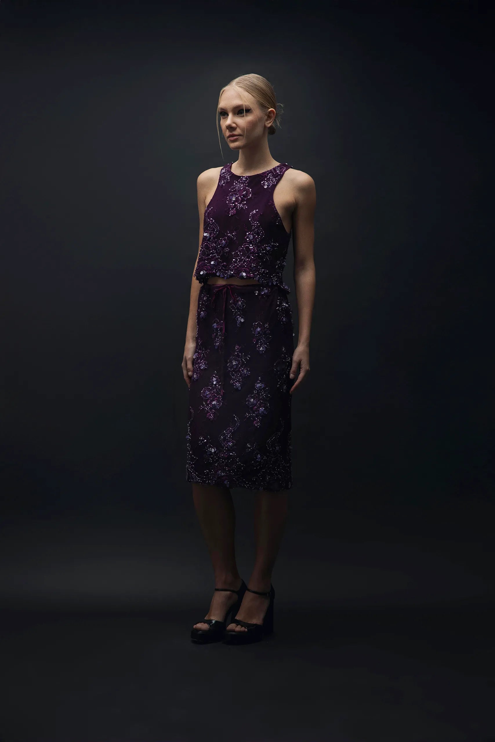 Blouse with floral motif detailed embroidery, sequin and stone decorations, slightly transparent structure and lace edge detail.