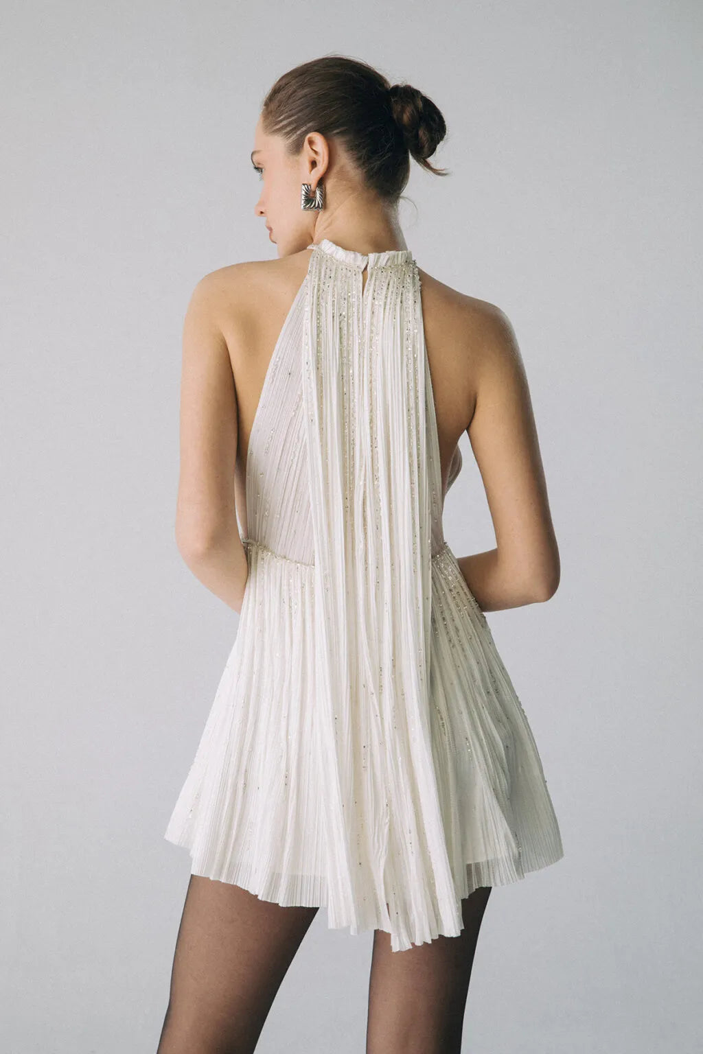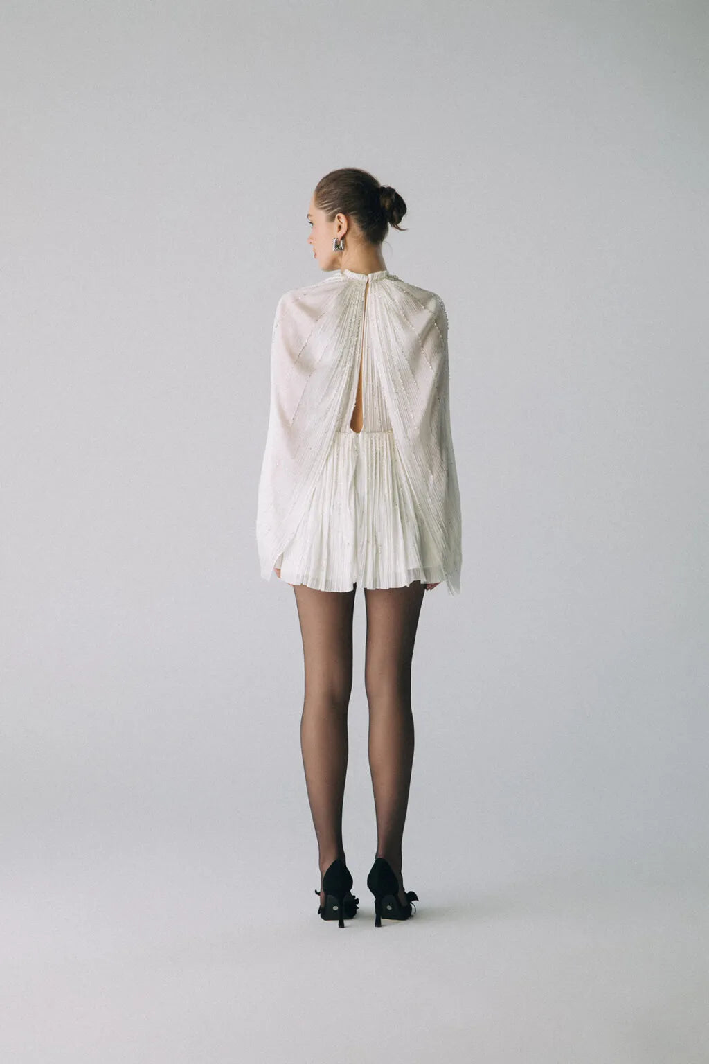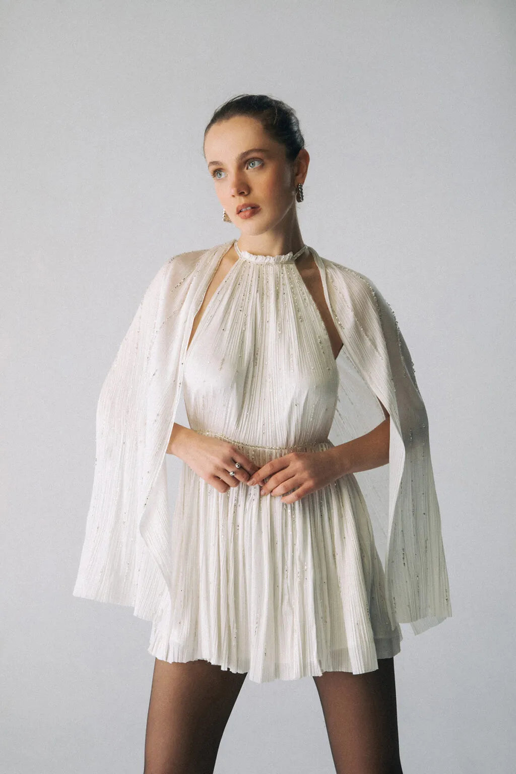 Esra Adıgüzel ZURİA - Yular Yaka Pelerin Detaylı Kristal Taş İşlemeli İpek Elbise