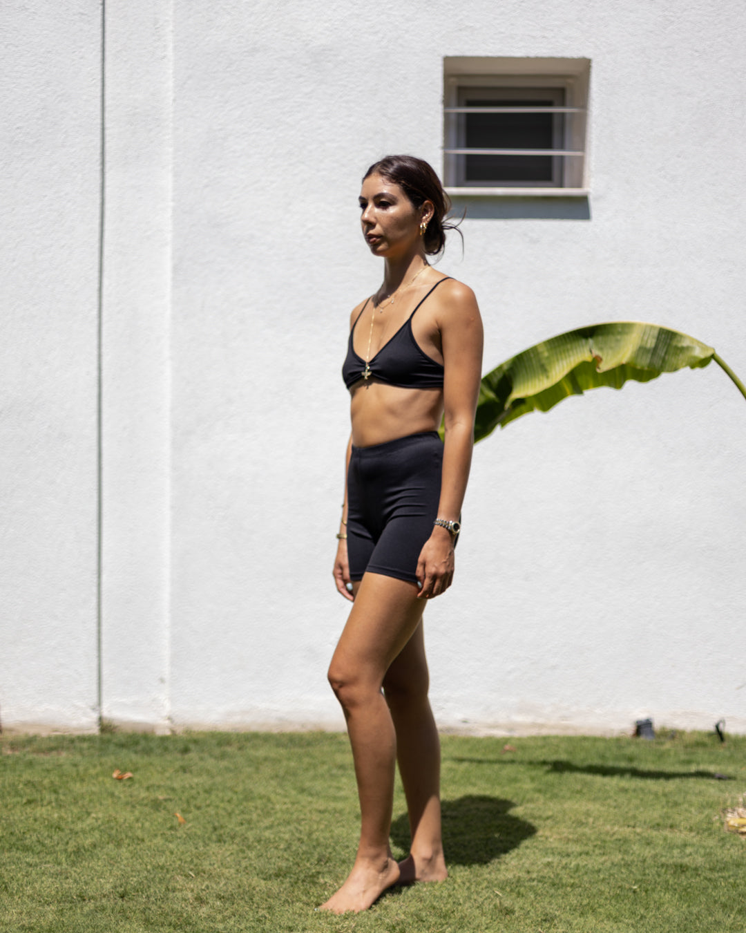 Kisses is an easy-to-use bra with string straps for back use, does not contain globes or chest pads. Polyester and Cotton fabric. It is suitable for washing at 30°. It can be ironed. It has lycra and flexible structure.