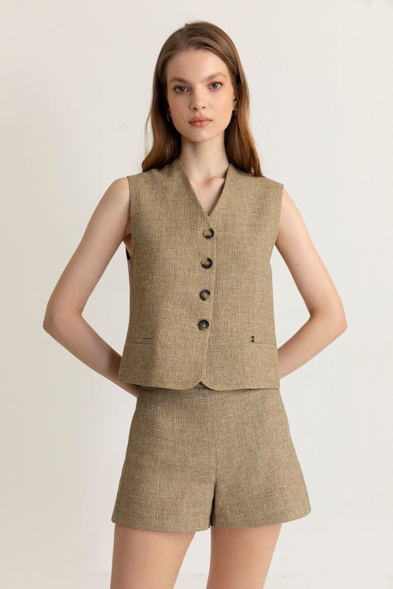 | Are you ready to lighten up your closet and holiday suitcase this summer? Giulia Shorts is the piece you need at the office for elegance stance that you want to catch in the summer heat. 30% Viscose and 70% Cotton are used in the content of the fabric, which is formed by combining the highest quality and environmentally friendly materials. Giulia Shorts will be an indispensable item for those who spend the summer season between both city and beach parties. You can easily style Giulia Shorts, with Giulia Blazer and Giulia Vest for a total look or with other items in your closet, to easily get different looks. |