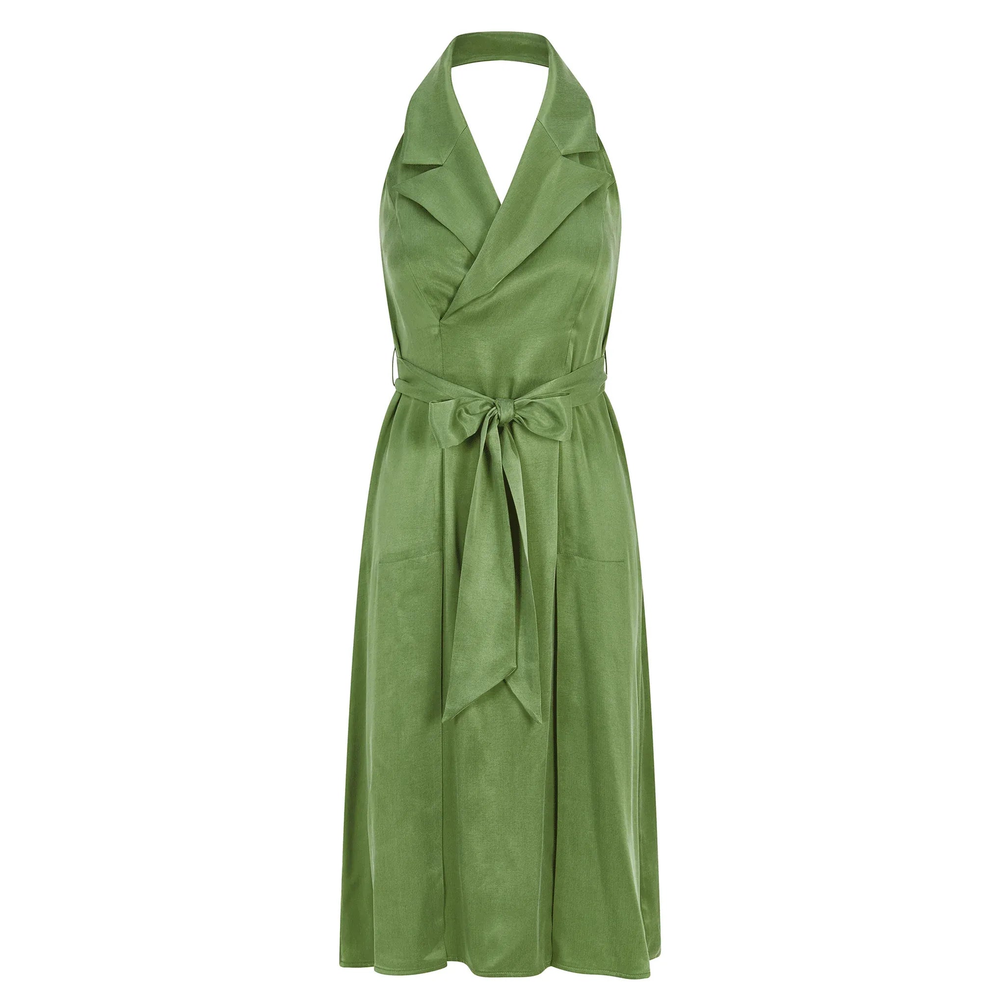 The Tuxedo dress, re-imagined. Femponiq’s imagination of equally unique and comfortable TD features a halter neck and smart notched lapels. Featuring a feminine sleeveless design, side concealed zip, elasticated open back, a mid length A-line silhouette, a waist belt and a double breasted neck that falls into pleated princes lines. This tuxedo-inspired timeless dress will ensure all eyes are on you, wherever you choose to wear it.