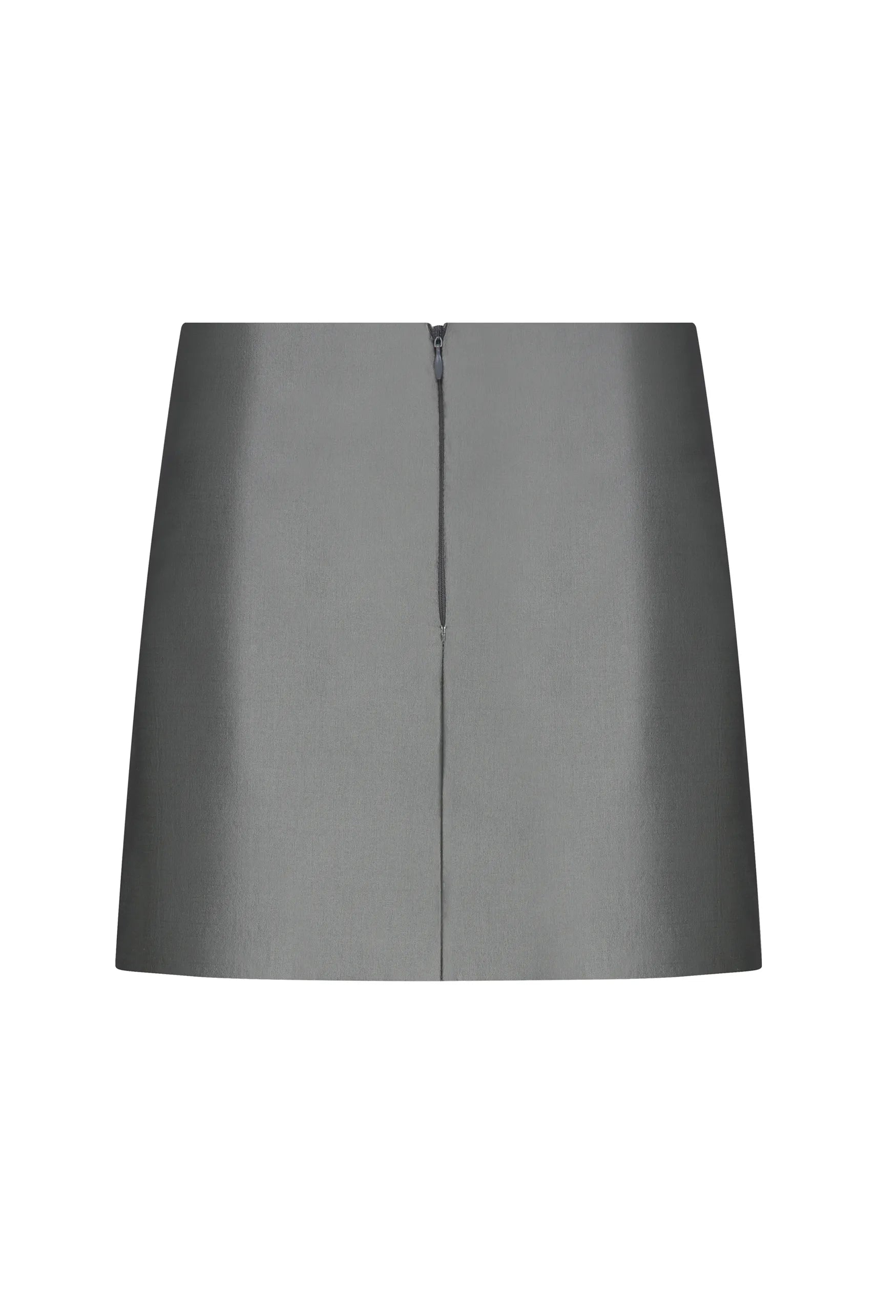 Drawing attention with its minimal design, this grey mini skirt fits every combination with its straight cut and elegant look.