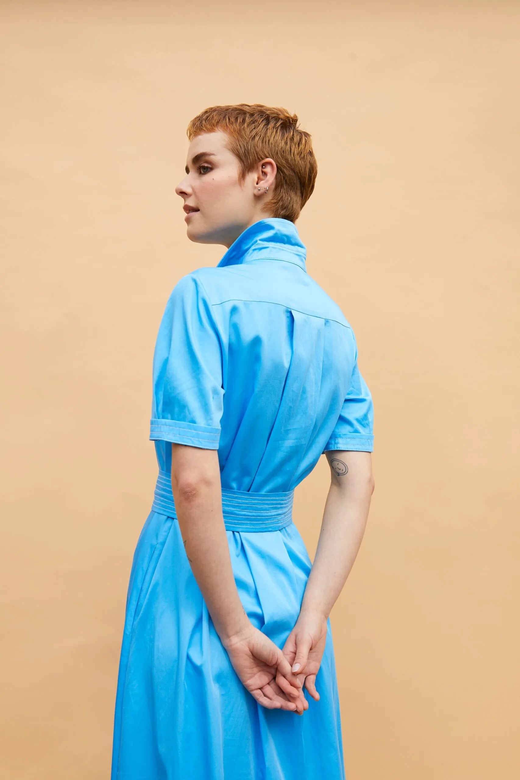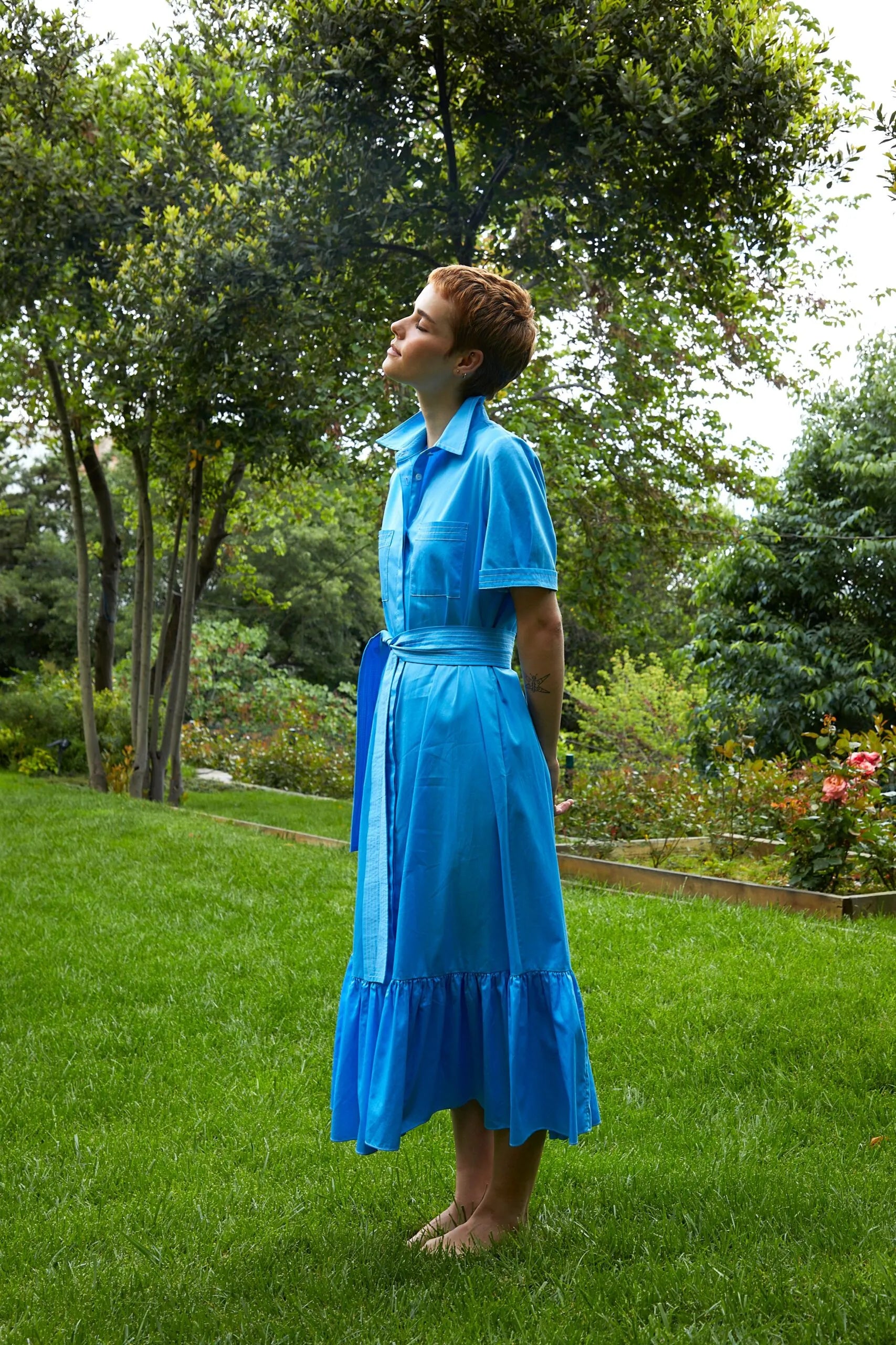İstanbul'un kendisi gibi canlı mavi bir elbise.
