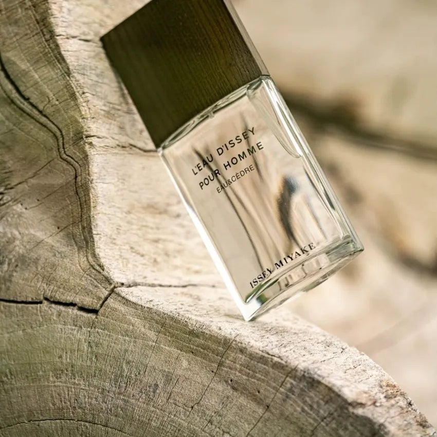 L\'Eau d\'Issey pour Homme Eau & Cèdre, canlı ve taze bir koku. Sedir ağacının gücü su ile güçlendirilmiştir.L\'Eau d\'Issey pour Homme Eau& Cèdre, ikonik şişeye kendine özgü bir şekilde övgüde bulunur.Temel olana geri dönen, ahşap ile süslenmiş minimalist bir şişe ona ilham veren ham, el değmemiş doğayı yansıtan kapak tasarımına sahiptir. L\'Eau d\'Issey pour Homme Eau& Cèdre şişesi %20 PCR geri dönüştürülmüş camdan yapılmıştır. Her bir ahşap başlık rengi ve damarları bakımından benzersizdir. Parfüm vegandır ve %91 doğal kökenli içeriklerden yapılmıştır.