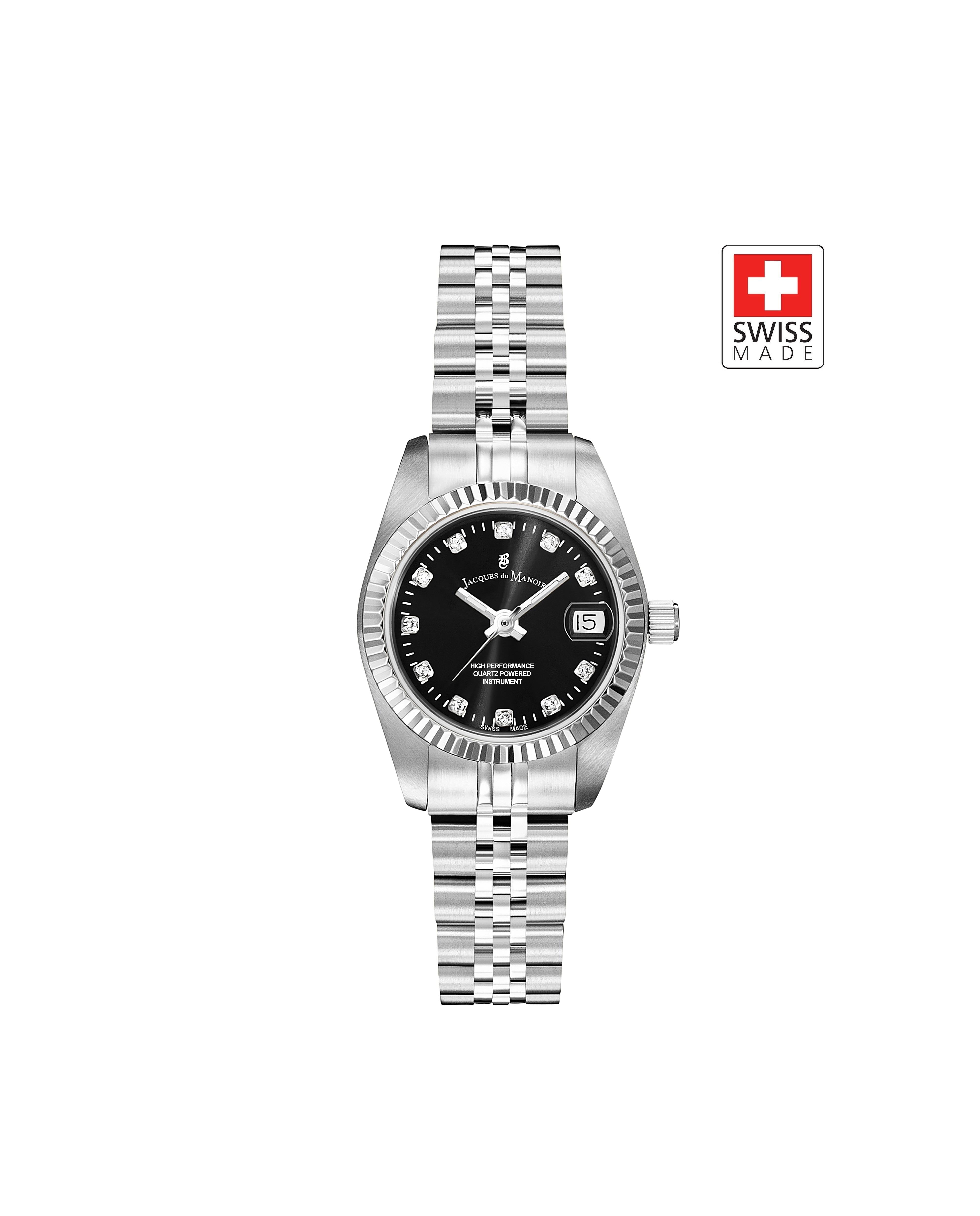 Kasa Çapı: 26 mm - Kasa Şekli: Yuvarlak - Kasa Materyali: Çelik - Kasa Rengi: Metalik Gri - Kordon Materyali: Çelik - Kordon Rengi: Metalik Gri- Kadran Rengi: Siyah - Kadran Işığı: Yok - Taş: Var - Çalışma Şekli: Analog - Teknolojisi: Quartz - Takvim: Var - Kronometre: Yok - Alarm: Yok - Cam Özelliği: Mineral - Özellik: Swiss Made - Su Geçirmezlik: 5 ATM - Garanti Süresi: 2 yıl - Cinsiyet: Kadın