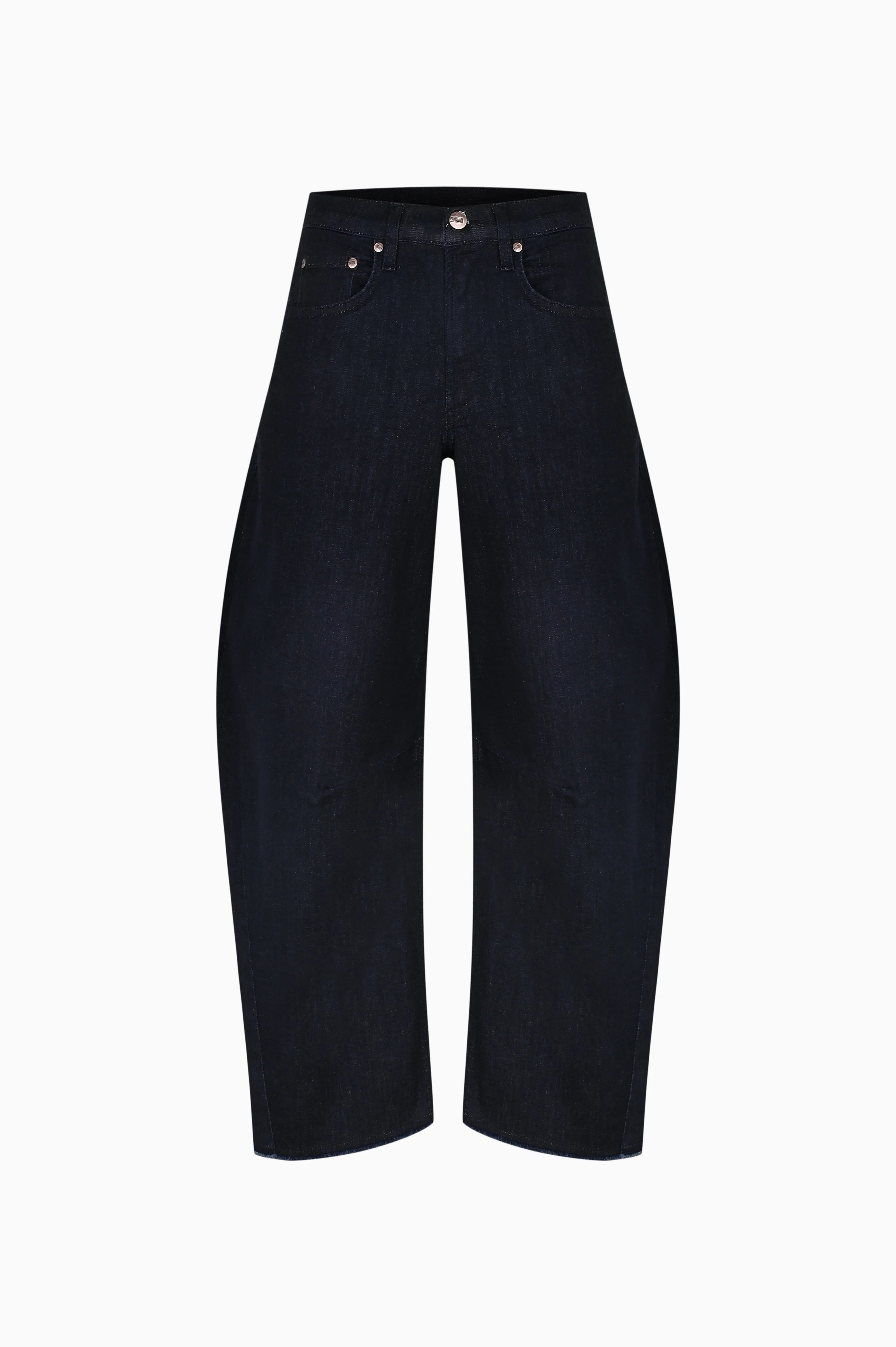 Dark navy, high waist, pockets, relaxed fit, denim pants.