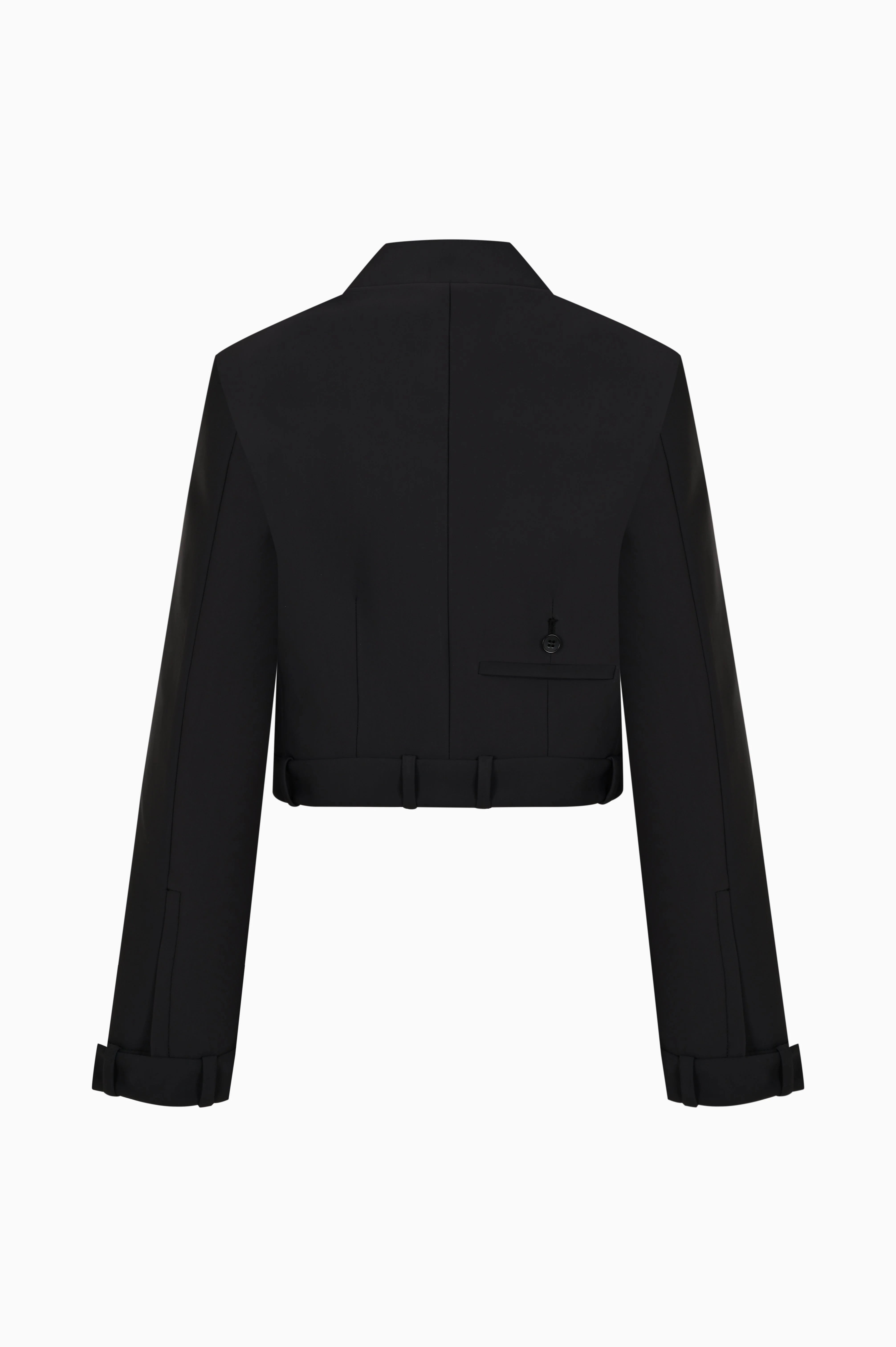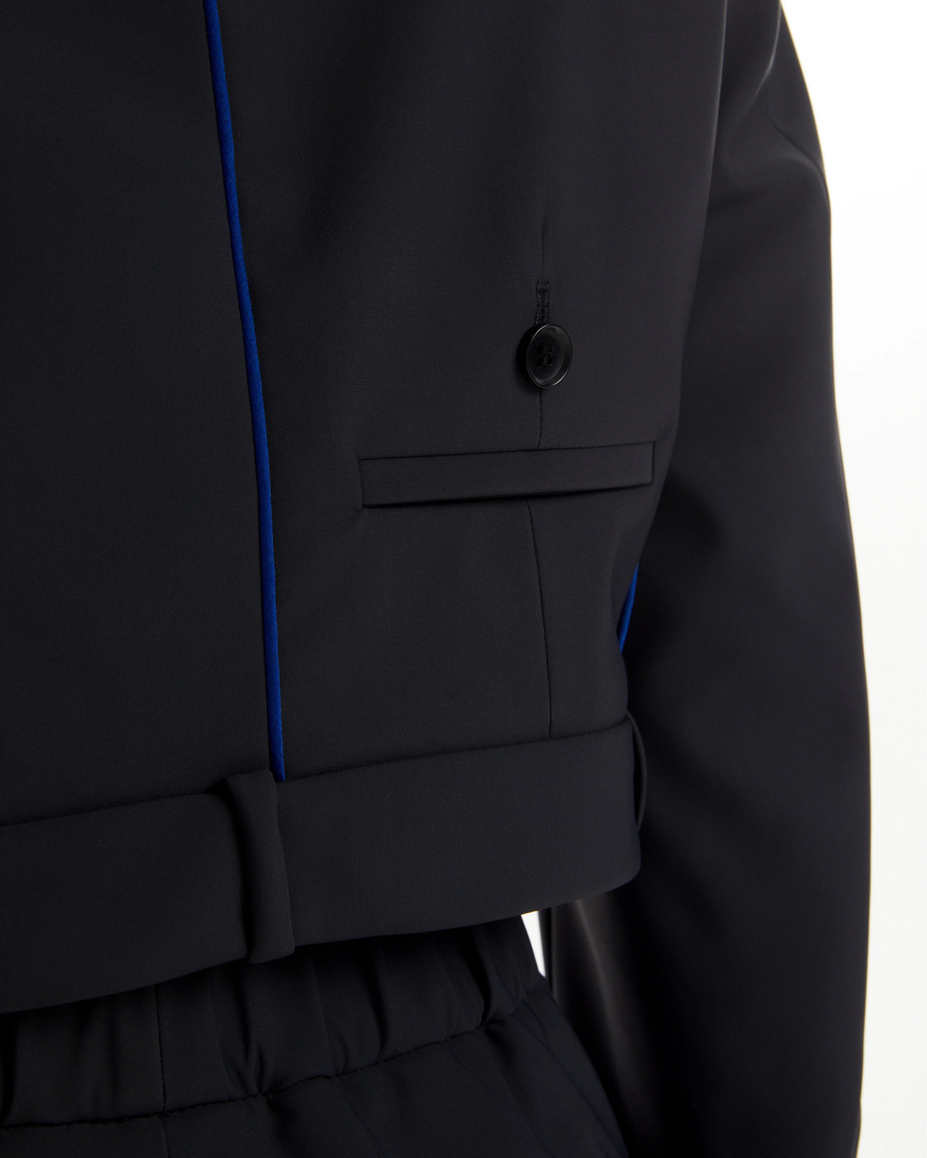 Unisex jacket in technical fabric, anthracite, zipper closure, belt detail on the hem, fake pocket detail on the back body.