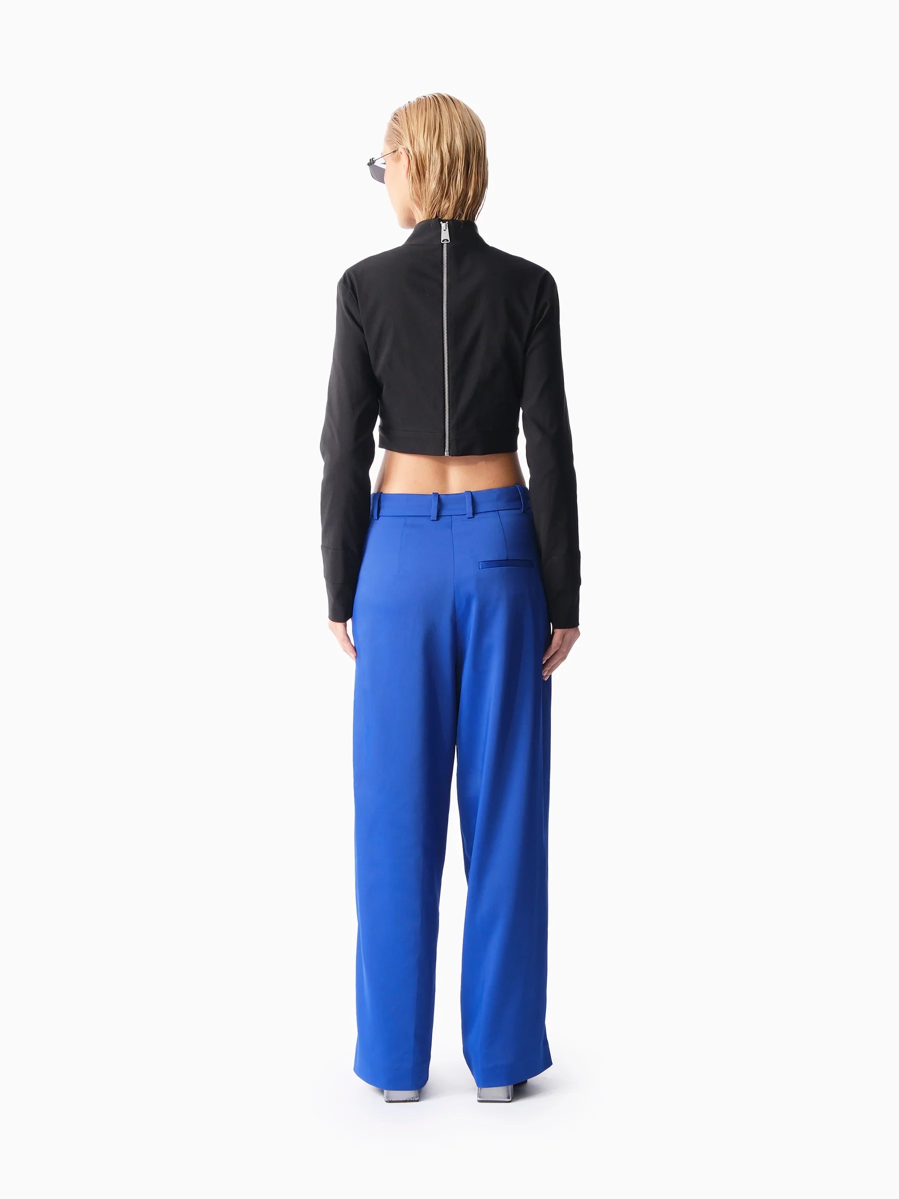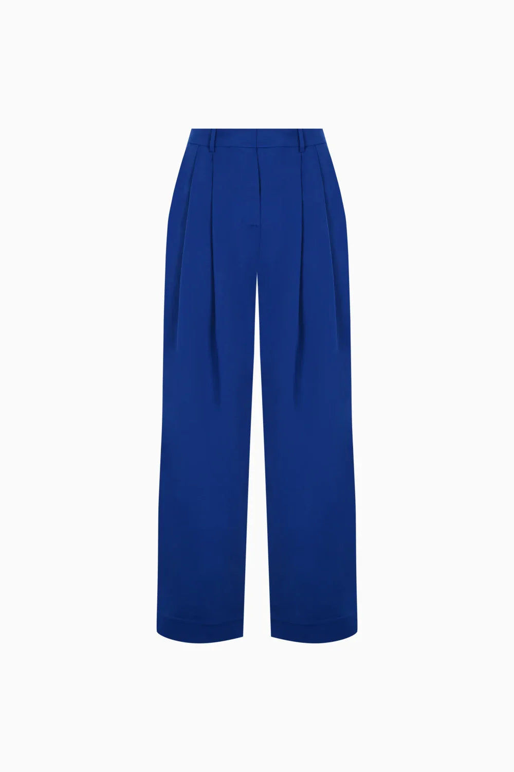 İç ölçü ayarlı, düğmeli ve iç kemer detaylı saten mavi palazzo pantolon.Bileşenler:%100 POLYESTER