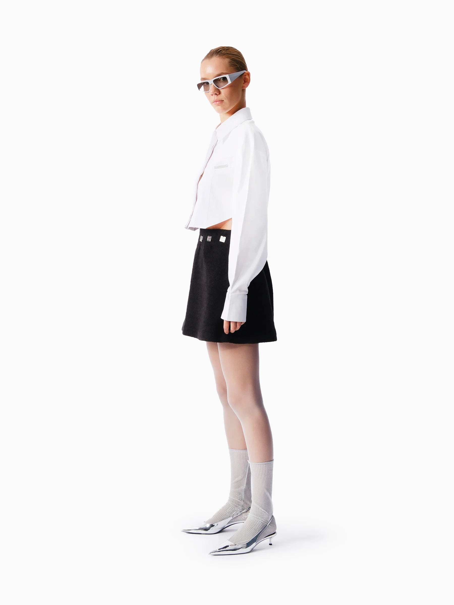 Gizli elastik kemerli yün karışımlı bir kumaştan yapılmış ve bel bandında KNTLGY metal logolu aksesuar detayı bulunan kloş bir etek.