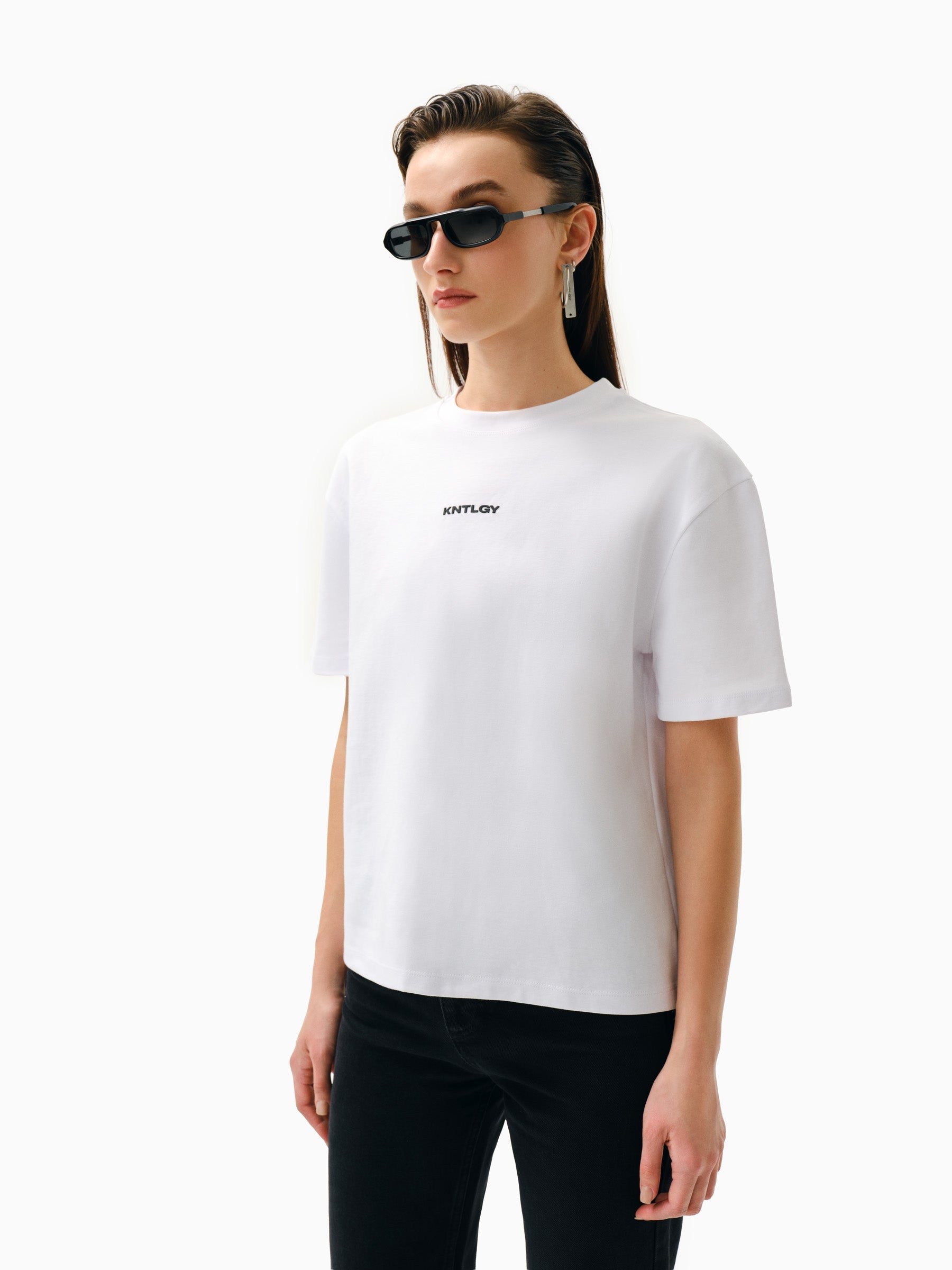 3/4 Kol, Merserize Pamuk, KNTLGY Baskılı Sıfır Yaka Tişört