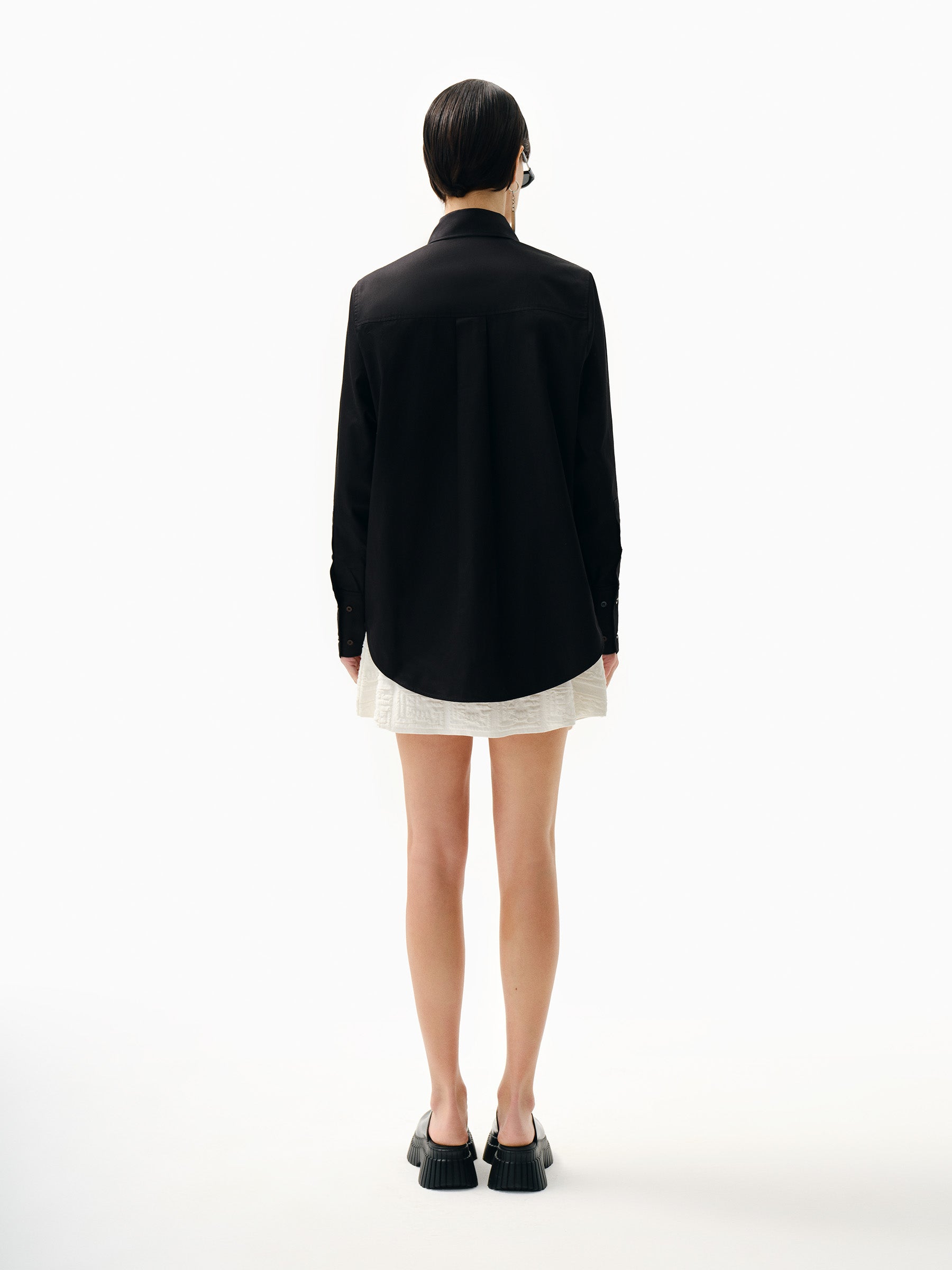 Long-sleeved black cotton shirt. Features KNTLGY metal logo plates on both collars. Comfortably cut with long cuffs.