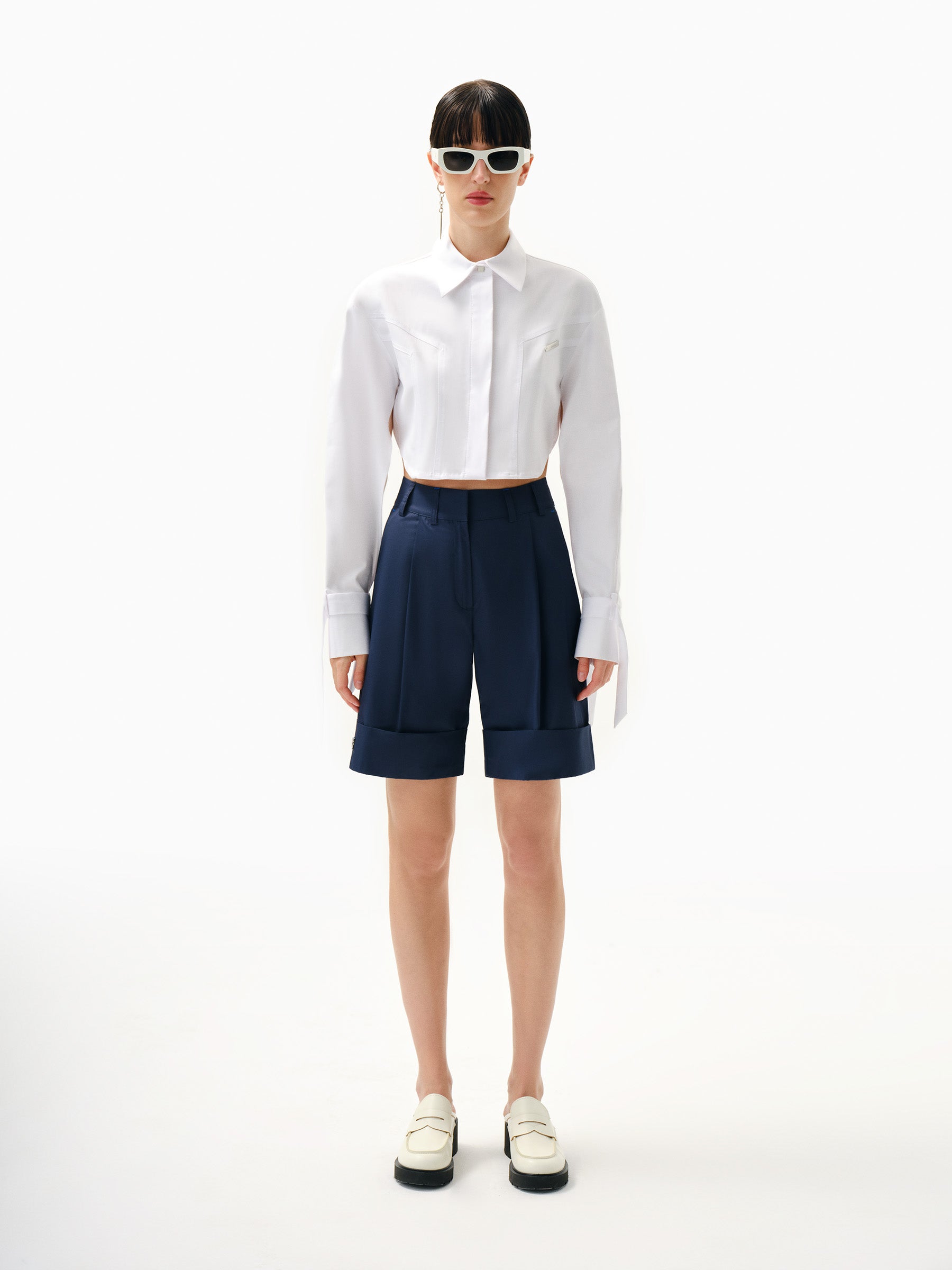 Knitology KNTLGY Beyaz Dokuma Crop Gömlek