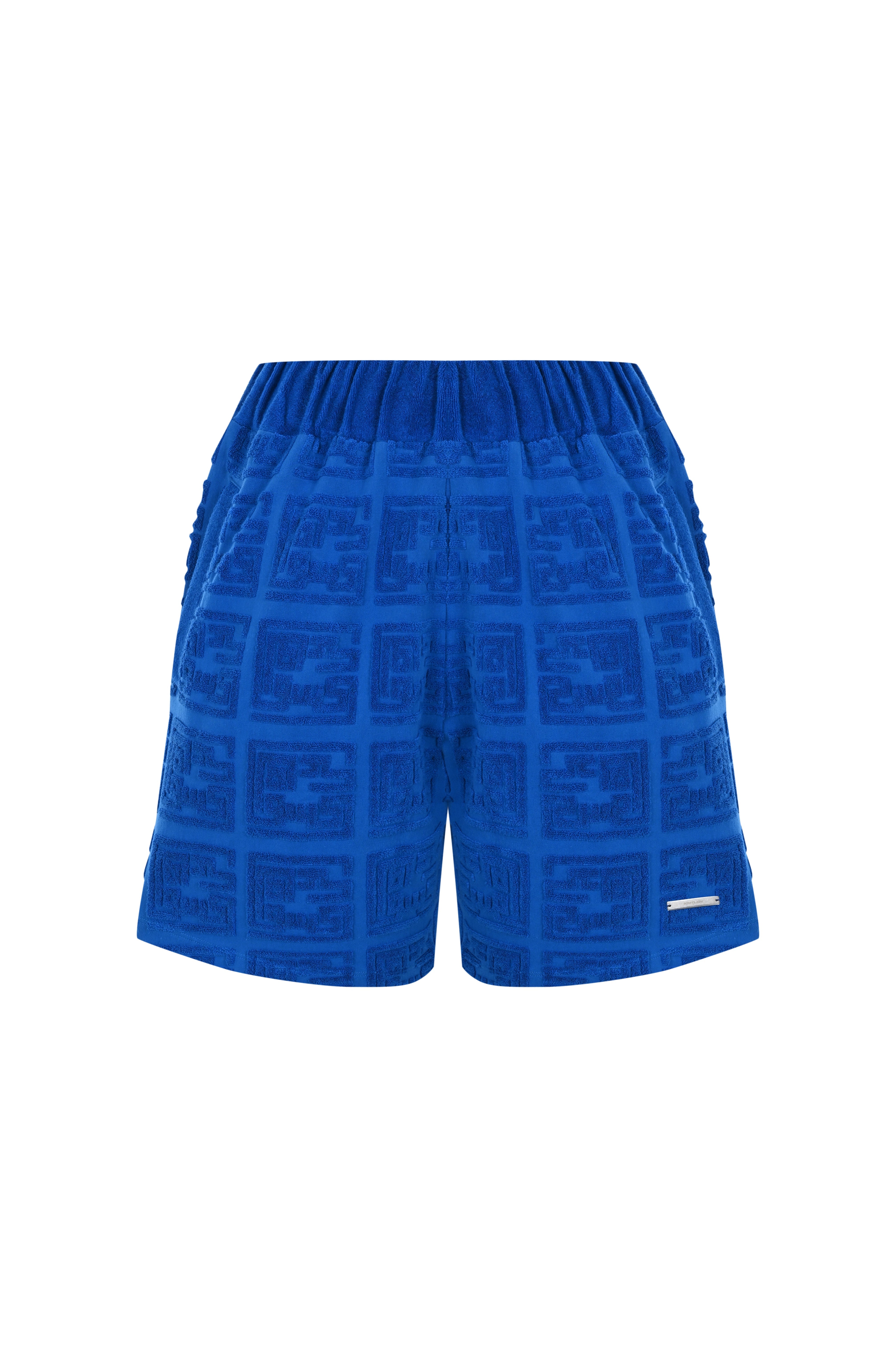 Unisex, Elastik kemerli, Geniş Paça Kesim Kenarlı, Genel Jakarlı Logo Detaylı Kumaşlı Mavi Havlu Şort
