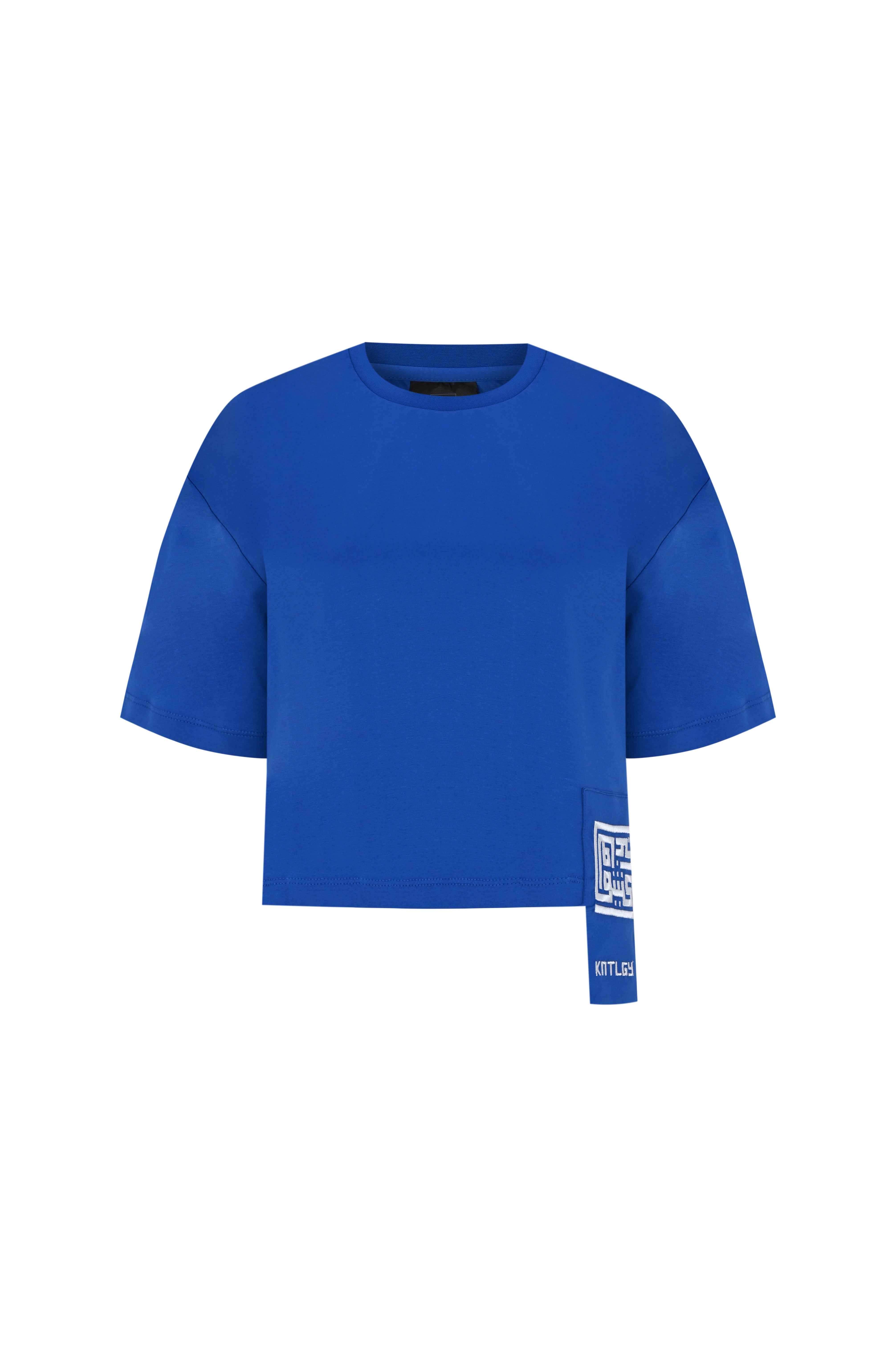 Short Sleeve Round Neck Crop T-shirt with Logo Detail