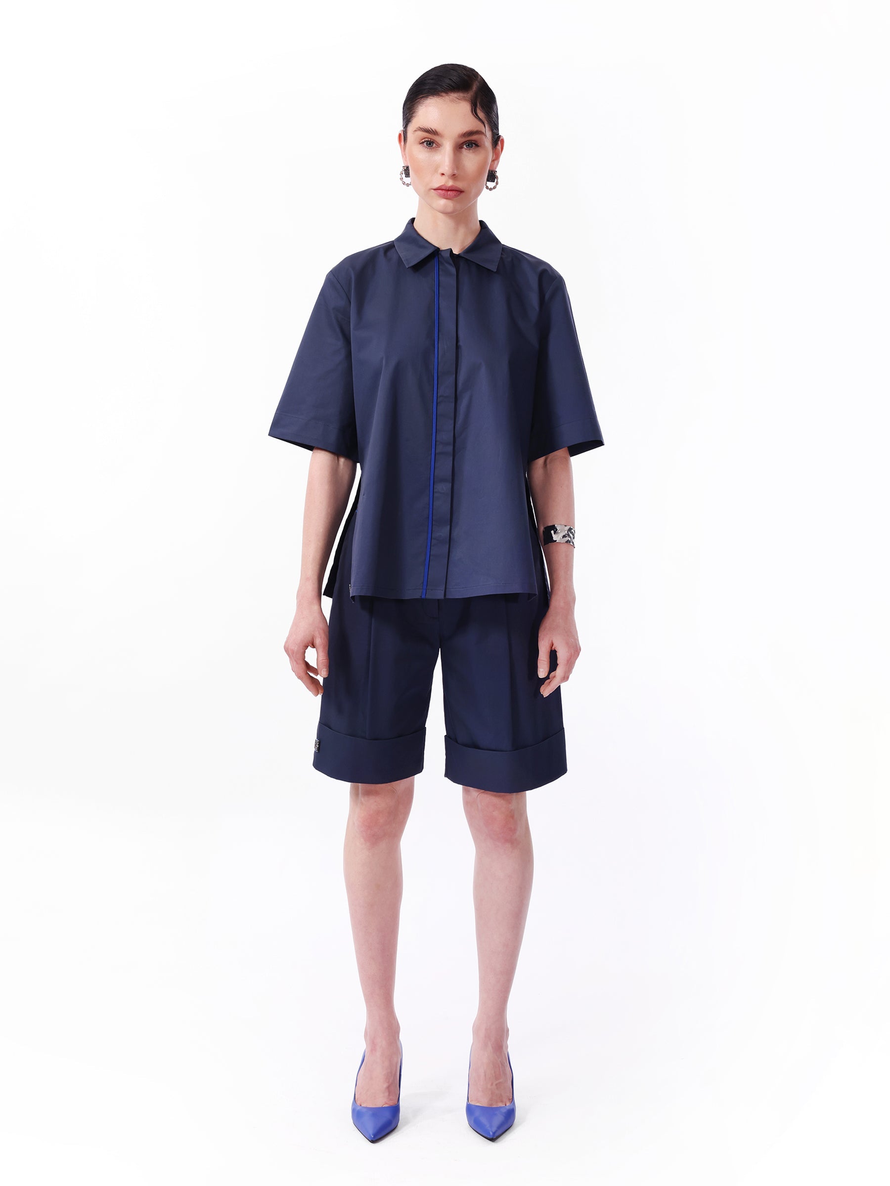 Knitology KNTLGY Lacivert Oversize Poplin A-Line Gömlek