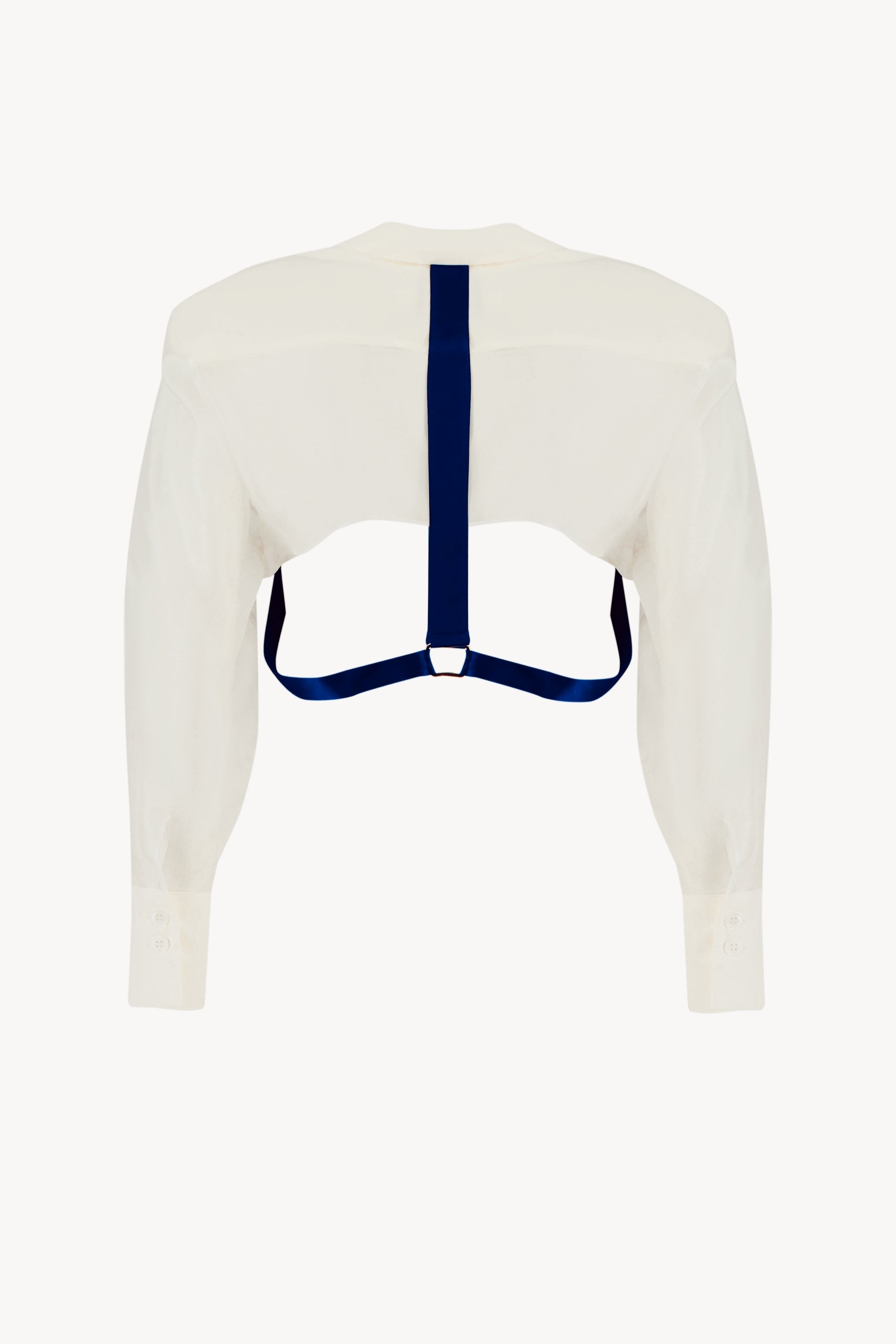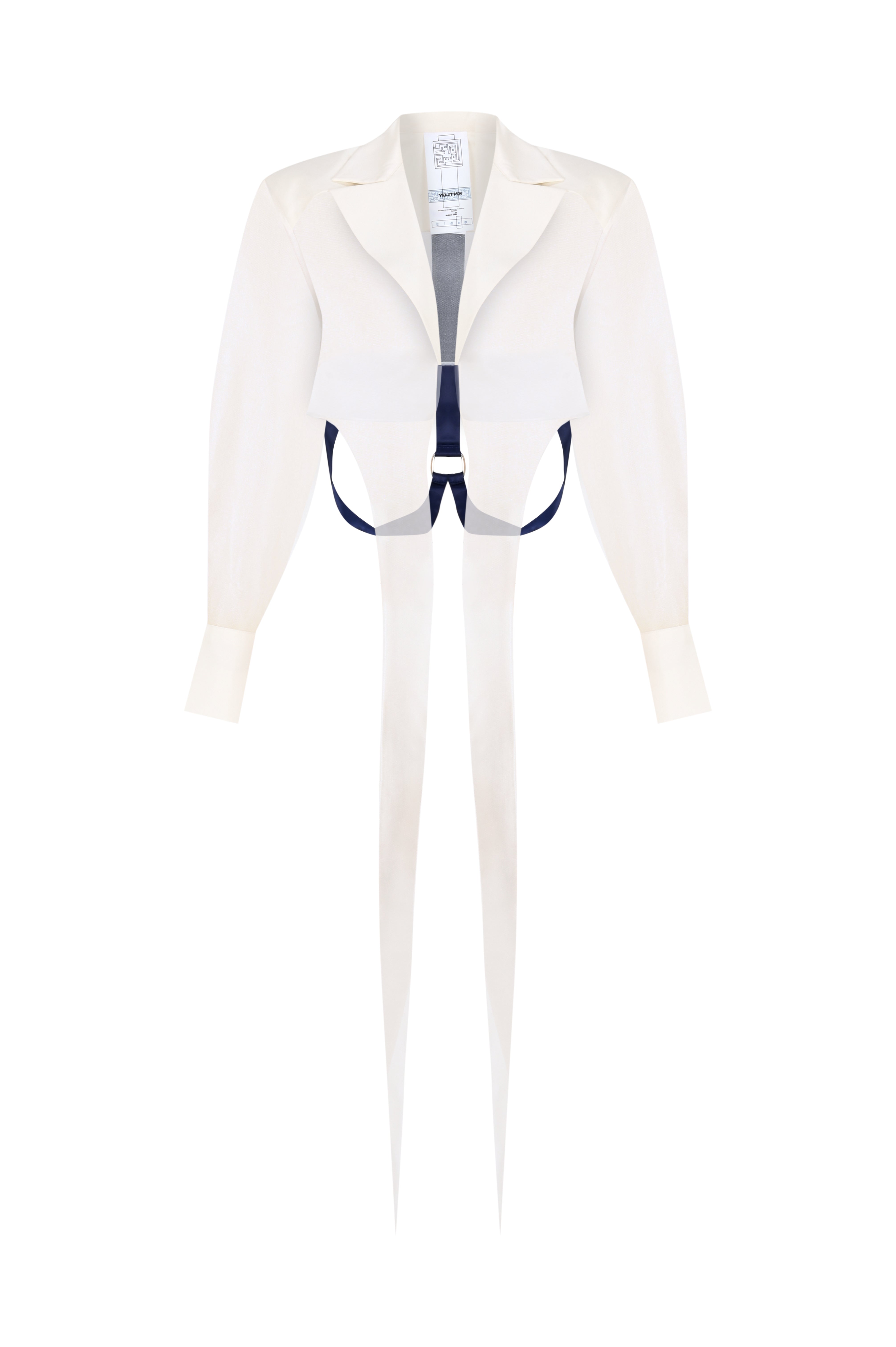 KNTLGY Ekru Organze Crop Ceket, modern ve fütüristik bir görünüm için mükemmel bir giysidir. Hafif kumaşı ve kırpılmış uzunluğu onu...