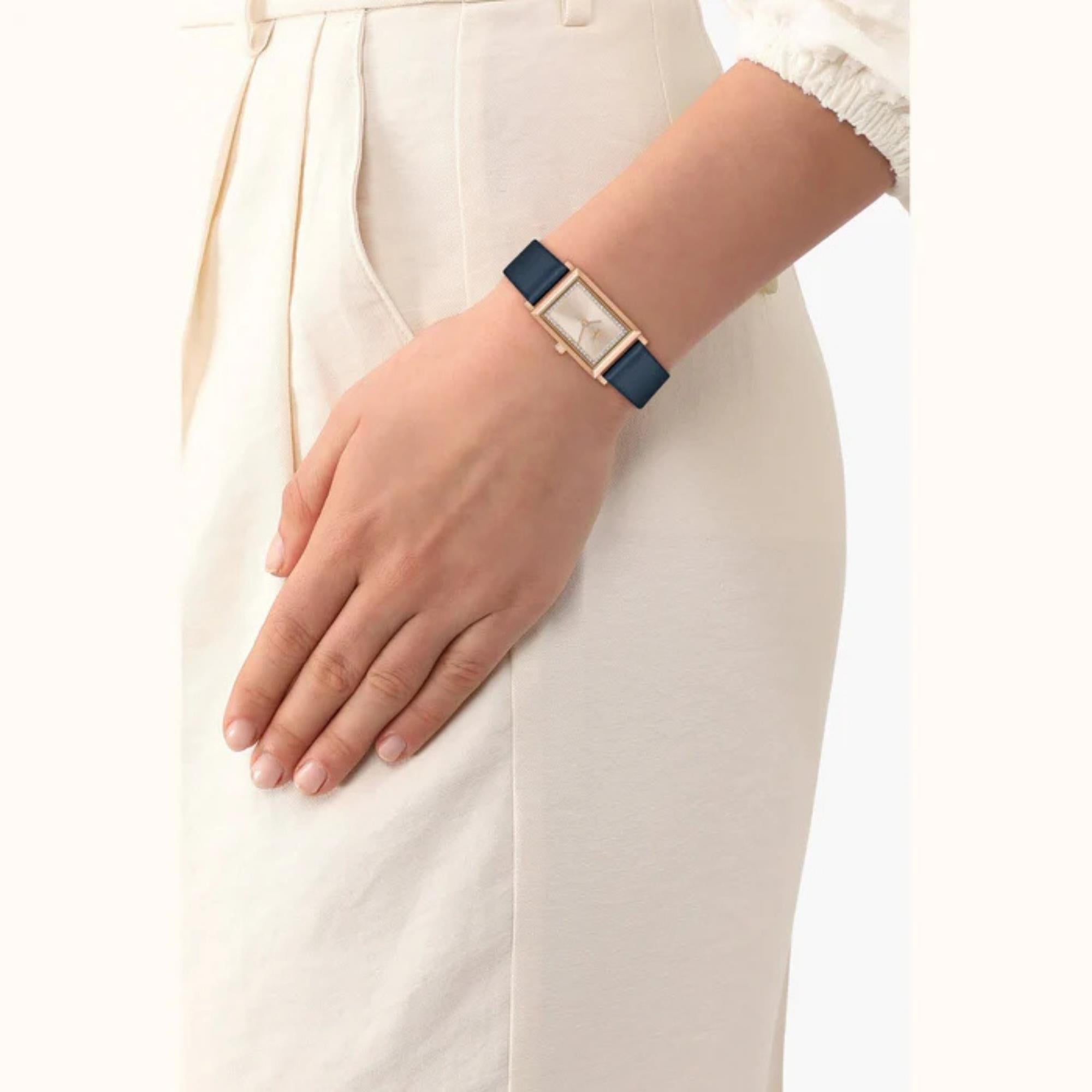 Kasa Çapı: 21 mm - Kasa Şekli: Dikdörtgen - Kasa Materyali: Çelik - Kasa Rengi: Rose Gold - Kordon Materyali: Deri - Kordon Rengi: Mavi- Kadran Rengi: Gümüş - Kadran Işığı: Yok - Taş: Var - Çalışma Şekli: Analog - Teknolojisi: Quartz - Takvim: Yok - Kronometre: Yok - Alarm: Yok - Cam Özelliği: Mineral - Özellik: - Su Geçirmezlik: 3 ATM - Garanti Süresi: 2 YIL - Cinsiyet: Kadın