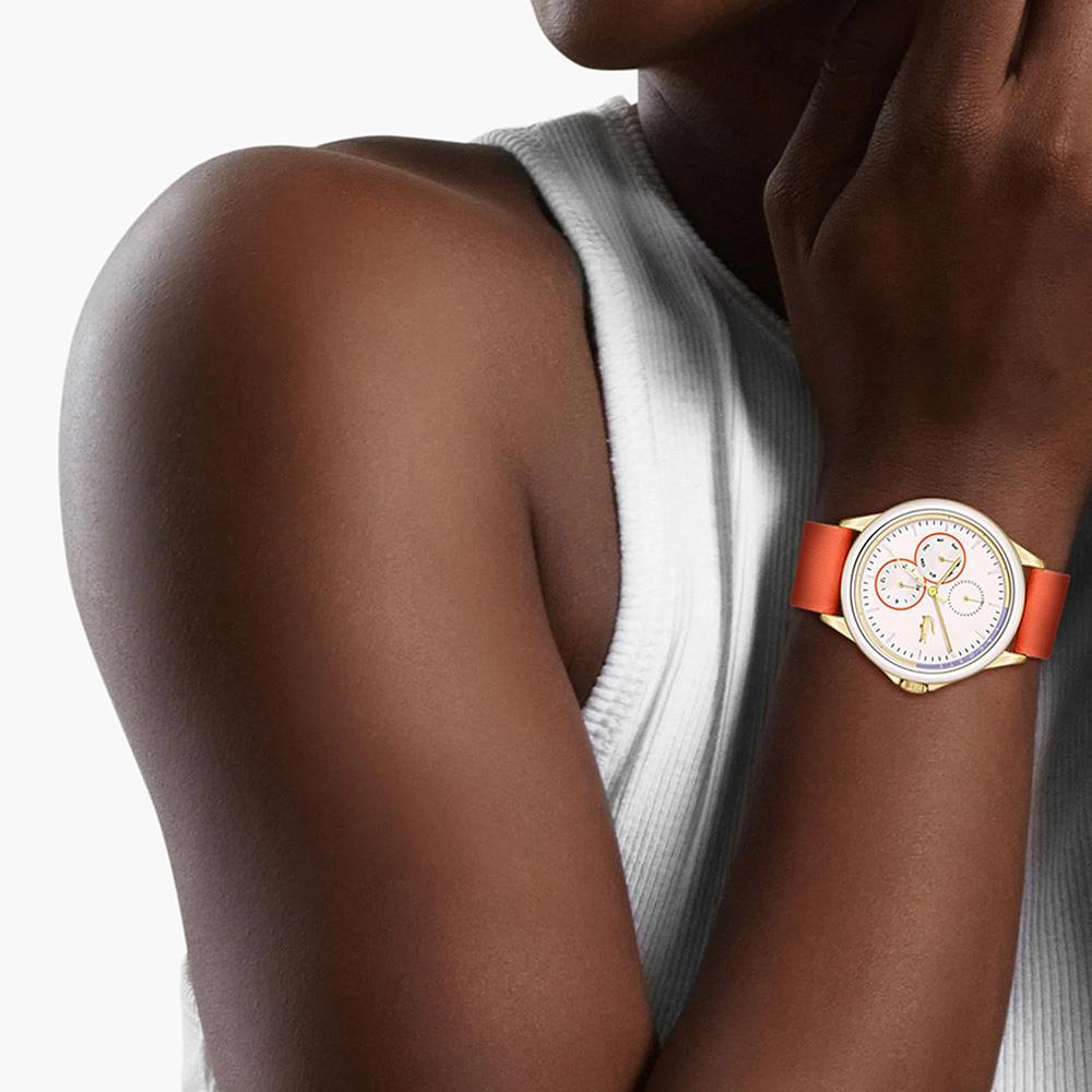 Kasa Çapı: 38 mm - Kasa Şekli: Yuvarlak - Kasa Materyali: Çelik - Kasa Rengi: Altın - Kordon Materyali: Deri - Kordon Rengi: Turuncu- Kadran Rengi: Pembe - Kadran Işığı: Yok - Taş: Yok - Çalışma Şekli: Analog - Teknolojisi: Quartz - Takvim: Var - Kronometre: Yok - Alarm: Yok - Cam Özelliği: Mineral - Özellik: - Su Geçirmezlik: 3 ATM - Garanti Süresi: 2 YIL - Cinsiyet: Kadın