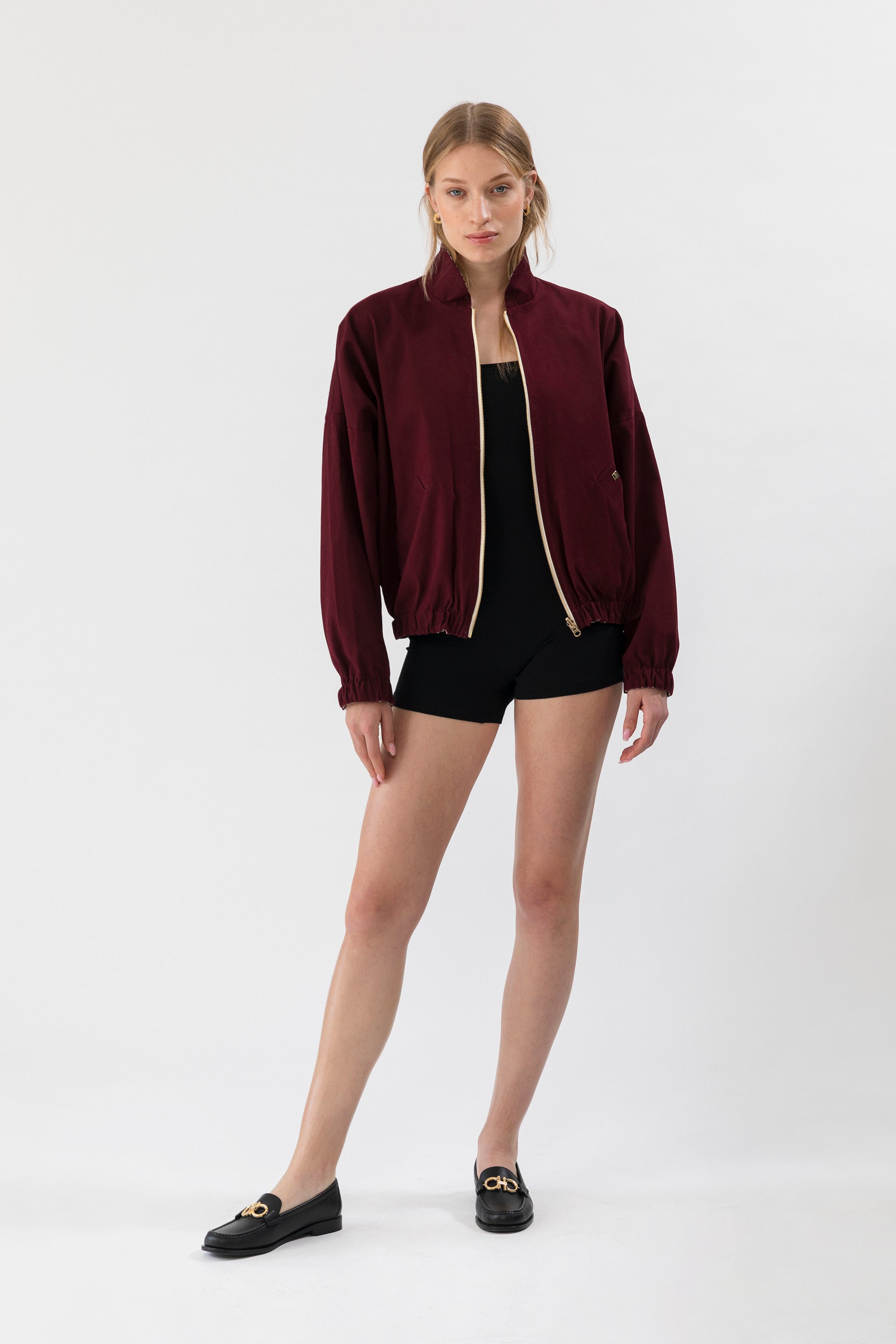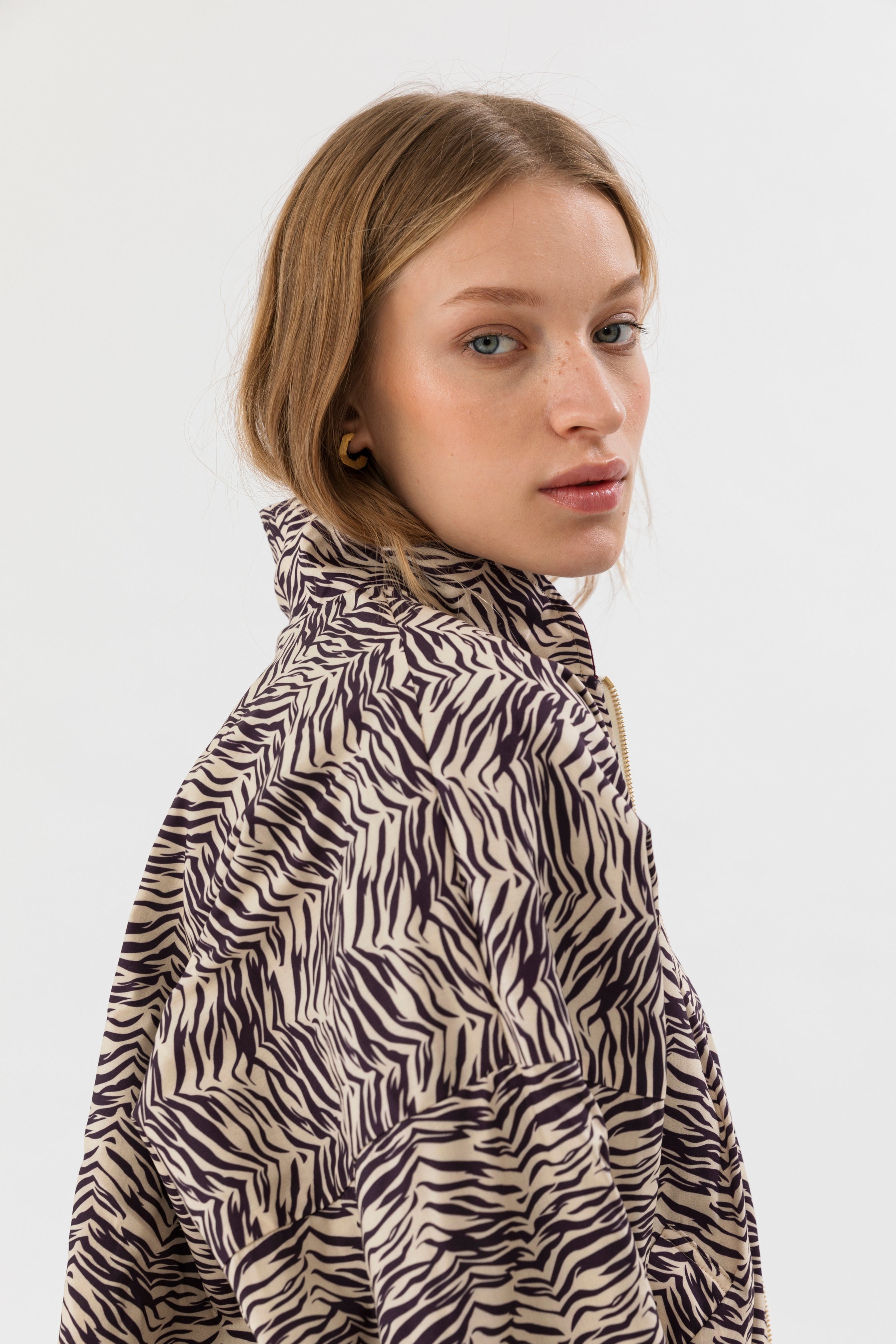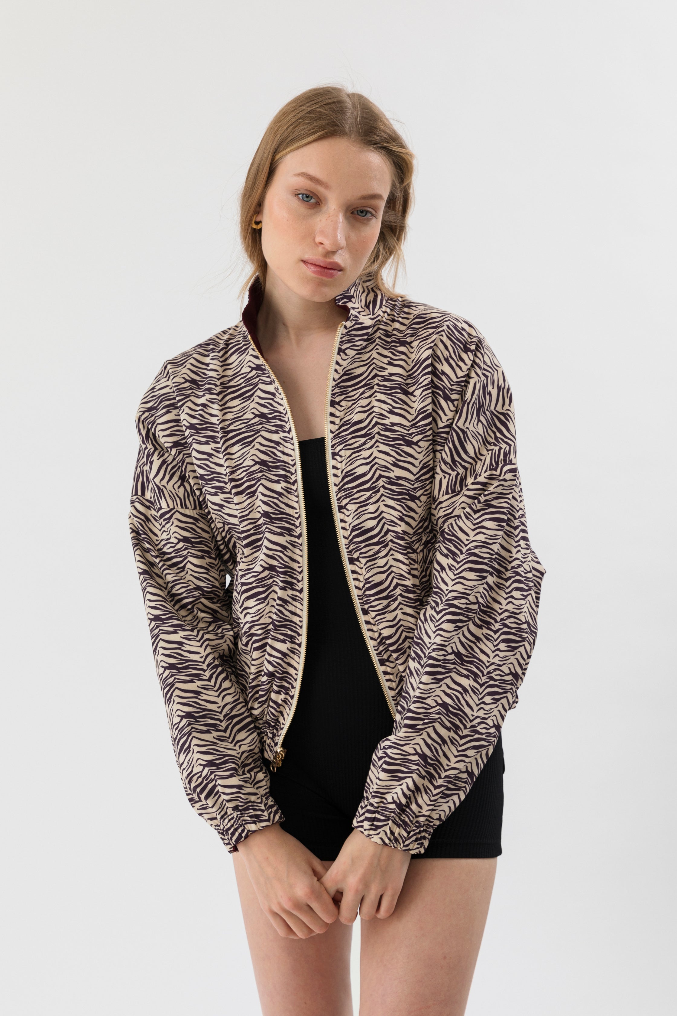 Baskılı astarlı, ters çevrilebilir pamuklu bomber ceket.