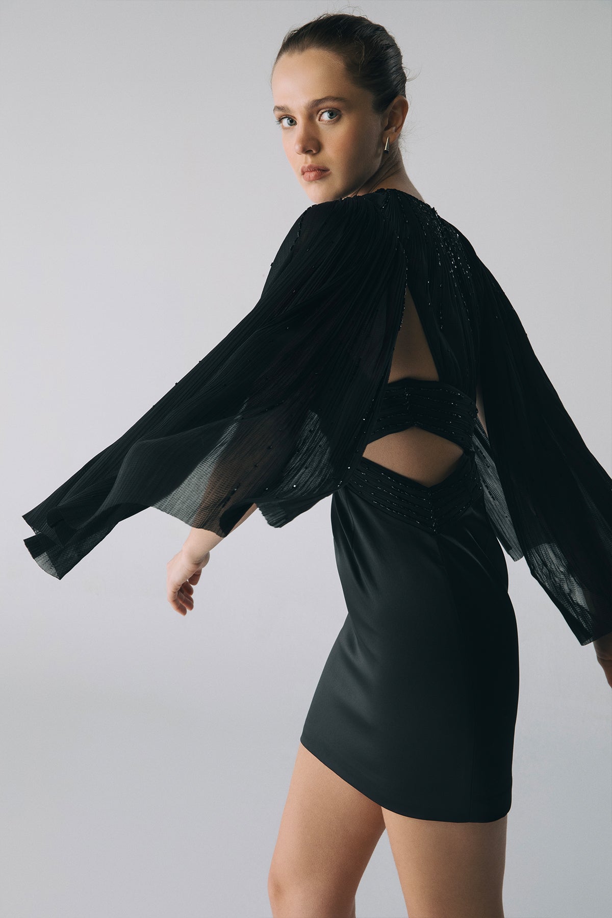 Esra Adıgüzel Korsajlı Örtü Detaylı Mini Elbise