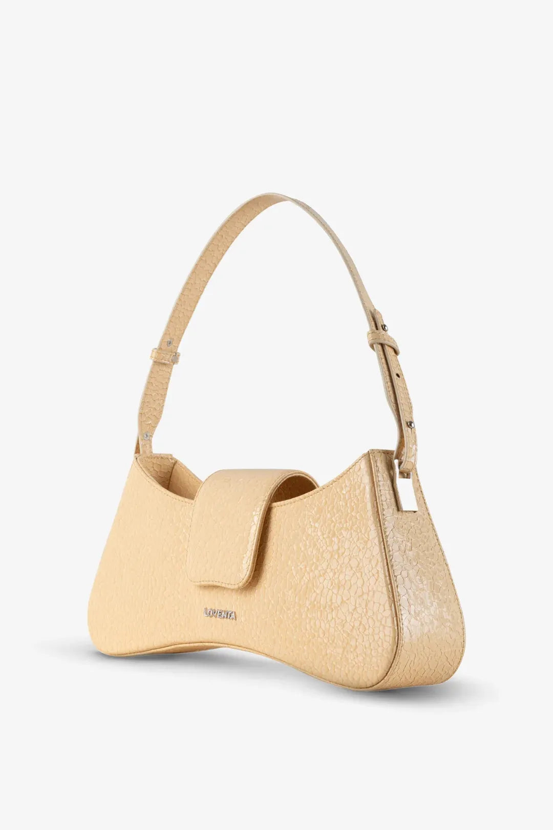 Greta, Loventa'nın zamansız tasarım anlayışını modern çizgilerle birleştiriyor. 35 cm uzunluğundaki bu omuz çantası, markanın ikonik kıvrımlı formunu taşıyor. Günlük kullanım için ideal olan Greta, şıklık ve fonksiyonelliği bir arada sunuyor.
