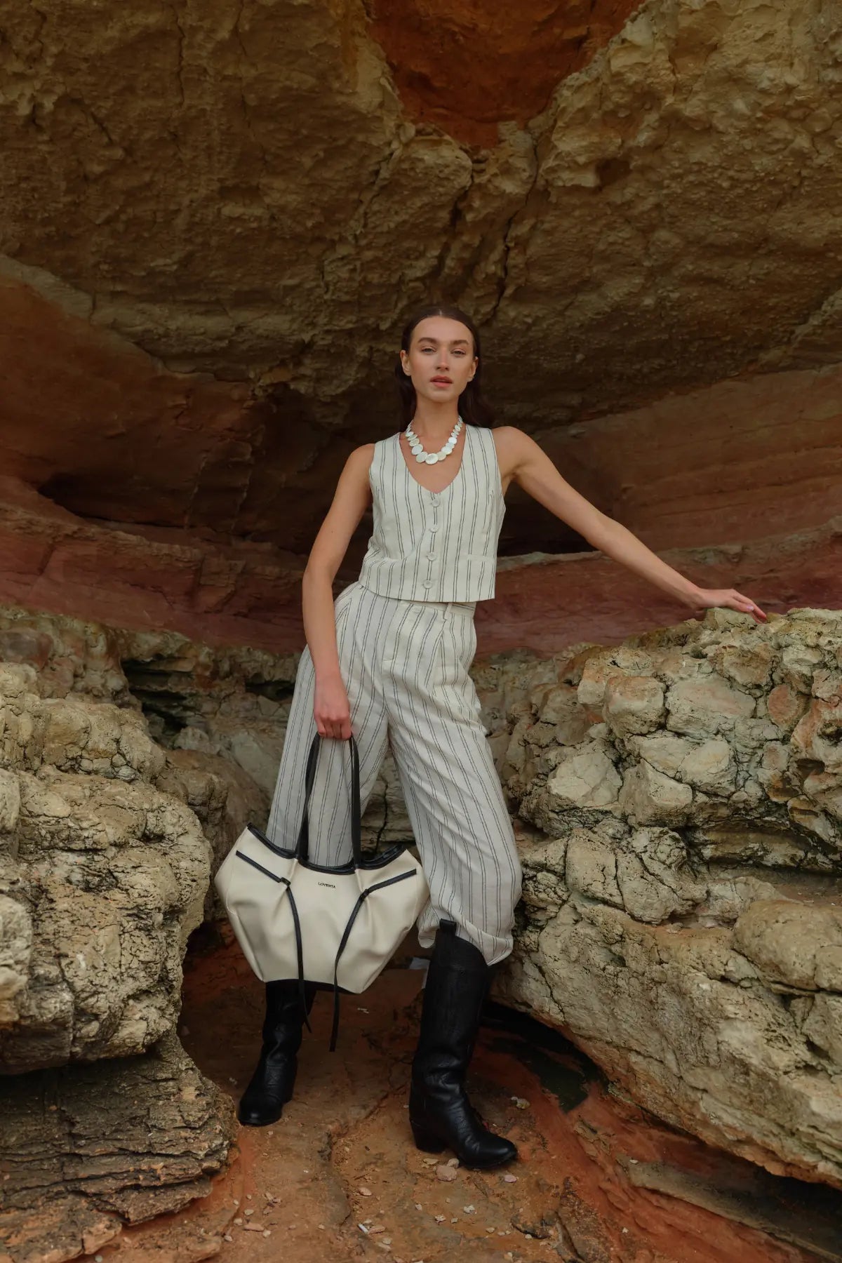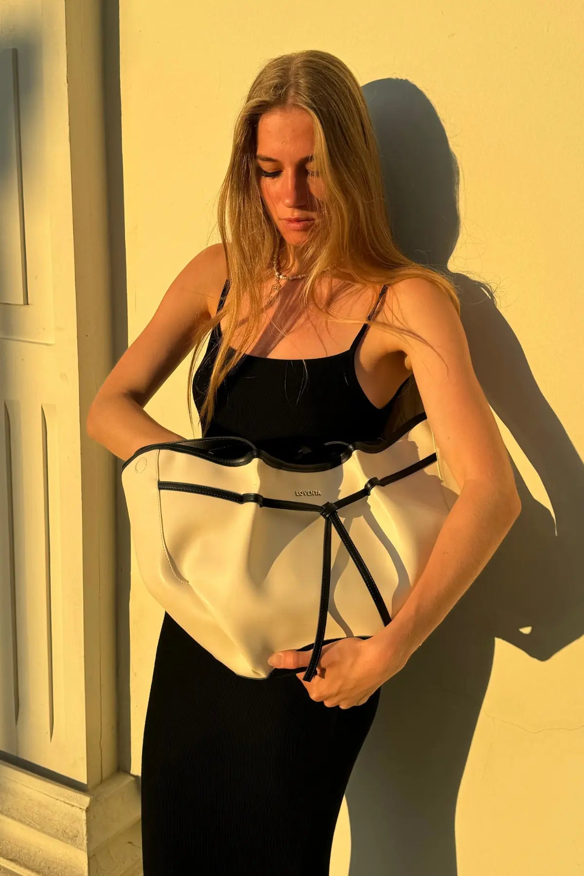 Loventa'nın imzası olan kuğu sembolünden ilham alan Niesha çanta, zarafet ve çok yönlülüğü benzersiz, heykelsi bir tasarımla birleştiriyor. Kuğu kanatlarını taklit eden zarif kavisli kenarlarıyla Niesha, iki farklı şekilde tasarlanabilir: içe doğru katlanmış kenarları olan kova tarzı bir çanta olarak (kapalı kanatlı bir kuğuyu andırır) veya uçuş halindeki bir kuğunun zarafetini yansıtan geniş açık bir tote olarak. Bu olağanüstü tasarım, Niesha'yı stil ve işlevi kusursuz bir şekilde birleştiren öne çıkan bir parça haline getiriyor.