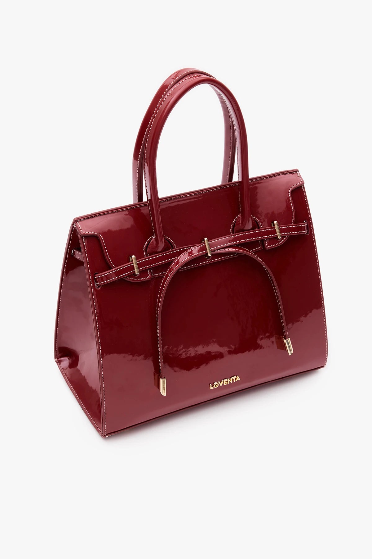 Loventa Orta Boy El Çantası Ciara Patent Deri - Bordo